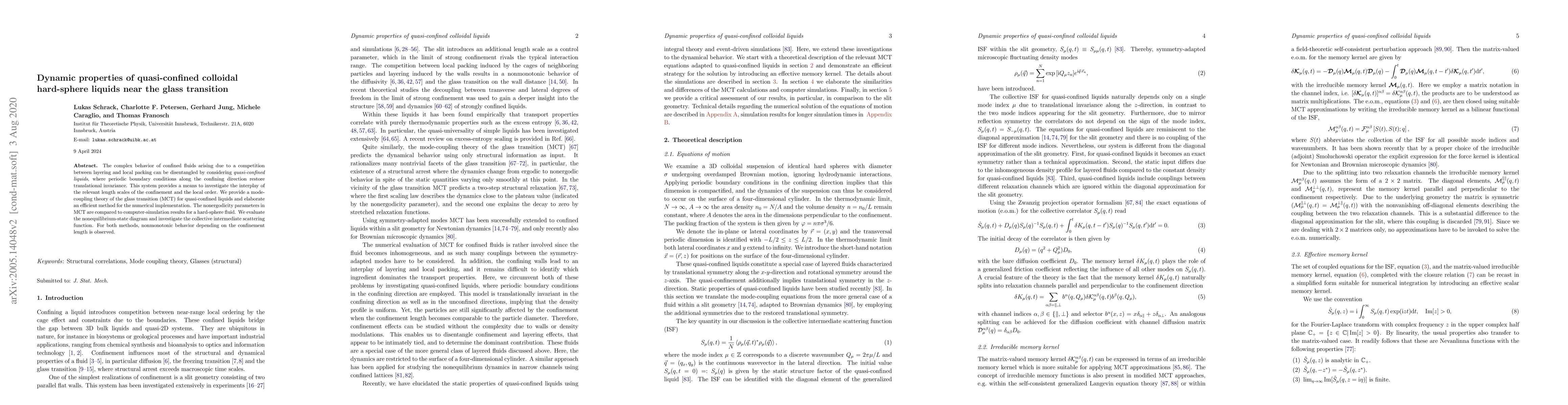 This paper develops a mode-coupling theory for quasi-confined colloidal hard-sphere liquids near the glass transition, revealing nonmonotonic behavior in nonergodicity parameters and the intermediate scattering function as a function of confinement length, validated by computer simulations.