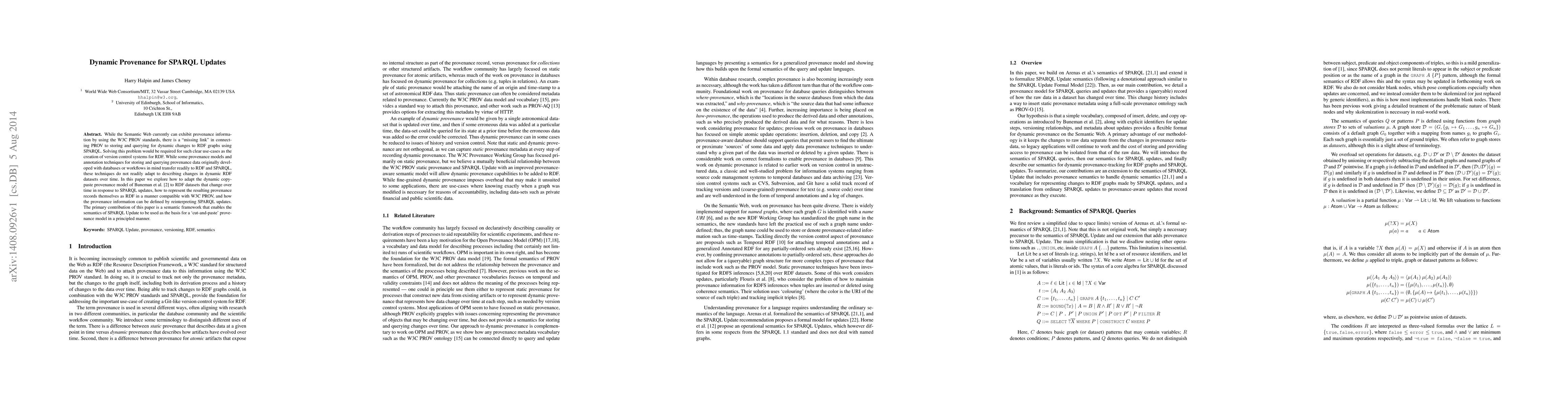 This paper proposes a semantic framework to integrate dynamic provenance with SPARQL Update, addressing the gap in linking W3C PROV standards with RDF graph changes. It adapts the copy-paste provenance model to RDF datasets, representing provenance records as RDF compatible with PROV, and reinterprets SPARQL updates to define provenance information.