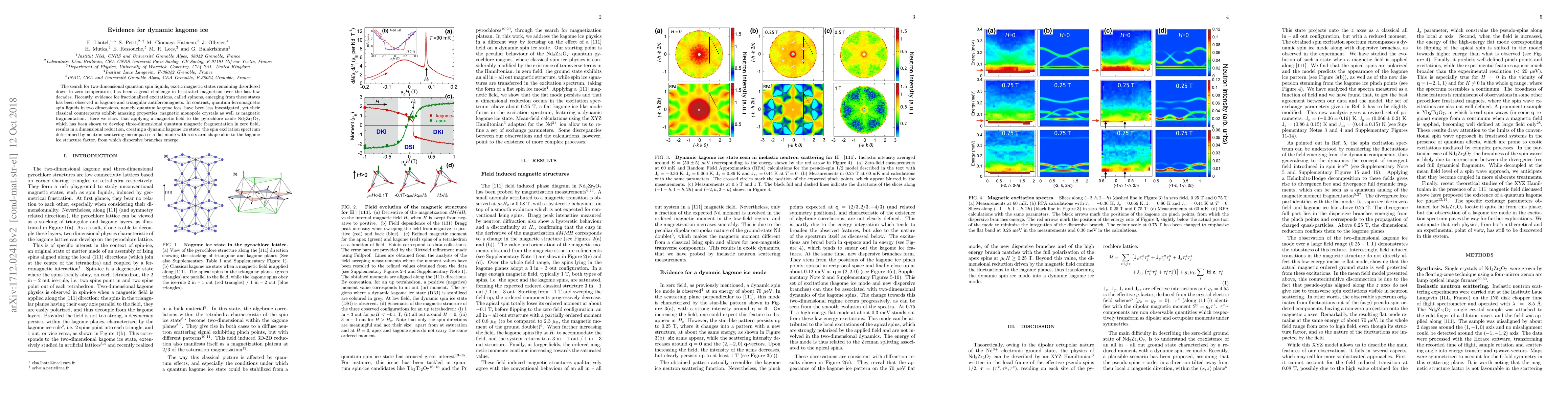 The search for two dimensional quantum spin liquids, exotic magnetic states with an entangled ground state remaining disordered down to zero temperature, has been a great challenge in frustrated magnetism during the last decades. Recently, fractionalized excitations, called spinons, emerging from these states, have been evidenced in kagome and triangular antiferromagnets. In contrast, quantum ferromagnetic spin liquids in two dimensions, namely quantum kagome ices, have been less investigated, yet their classical counterparts exhibit amazing properties, magnetic monopole crystals as well as magnetic fragmentation. Here we show that, by applying a magnetic field on the pyrochlore oxide Nd$_2$Zr$_2$O$_7$, which has been shown to develop three dimensional quantum magnetic fragmentation in zero field, we are able to reduce the dimension of the system and to create a dynamic kagome ice state. Our results open the way to the observation of the quantum kagome ice state which was recently investigated theoretically.