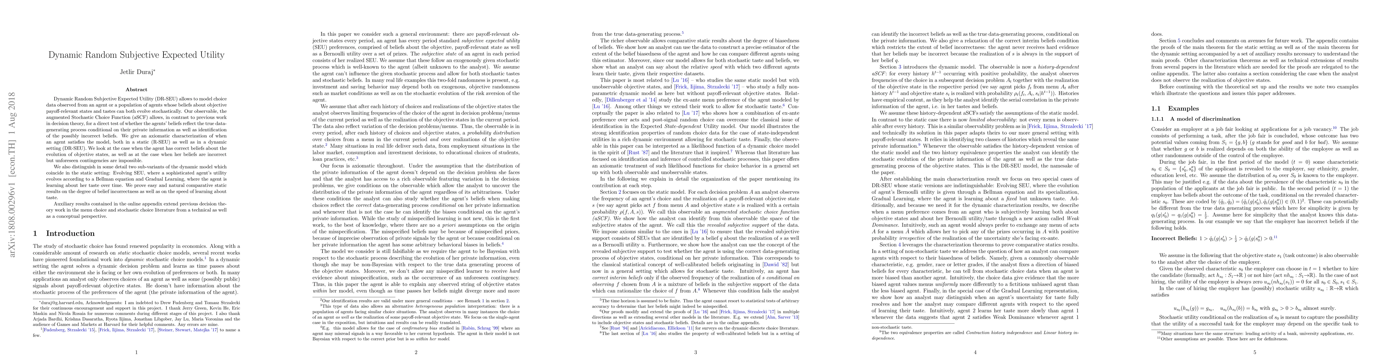 This paper introduces the Dynamic Random Subjective Expected Utility (DR-SEU) model to capture evolving beliefs and preferences in decision-making. It presents an augmented Stochastic Choice Function (aSCF) for testing agents' belief accuracy and identifies incorrect beliefs. The paper also characterizes the model axiomatically and explores two dynamic subvariants: Evolving SEU and Gradual Learning, providing comparative statics on belief incorrectness and learning speed.