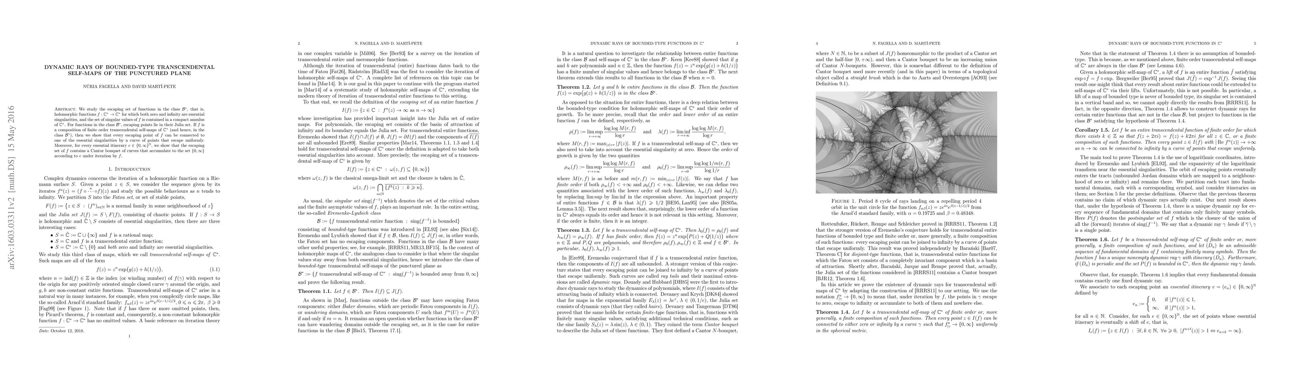 We study the escaping set of functions in the class $\mathcal B^*$, that is, holomorphic functions $f:\mathbb C^*\to\mathbb C^*$ for which both zero and infinity are essential singularities, and the set of singular values of $f$ is contained in a compact annulus of $\mathbb C^*$. For functions in the class $\mathcal B^*$, escaping points lie in their Julia set. If $f$ is a composition of finite order transcendental self-maps of $\mathbb C^*$ (and hence, in the class $\mathcal B^*$), then we show that every escaping point of $f$ can be connected to one of the essential singularities by a curve of points that escape uniformly. Moreover, for every essential itinerary $e\in\{0,\infty\}^\mathbb N$, we show that the escaping set of $f$ contains a Cantor bouquet of curves that accumulate to $\{0,\infty\}$ according to $e$ under iteration by $f$.