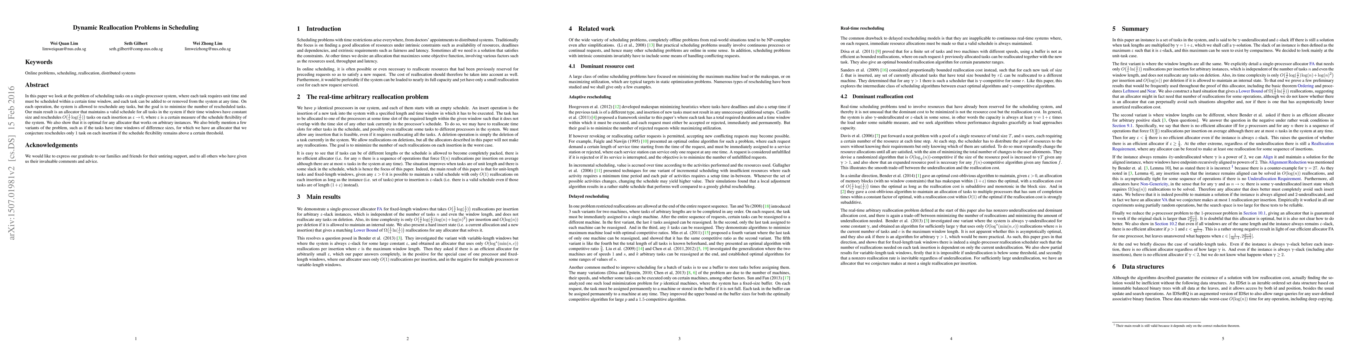 A new algorithm minimizes rescheduled tasks in a dynamic scheduling system with constant-sized time windows, rescheduling O(1/{ω}*log(1/{ω})) tasks on each insertion as {ψ} approaches 0. It is also shown to be optimal for any allocator.
