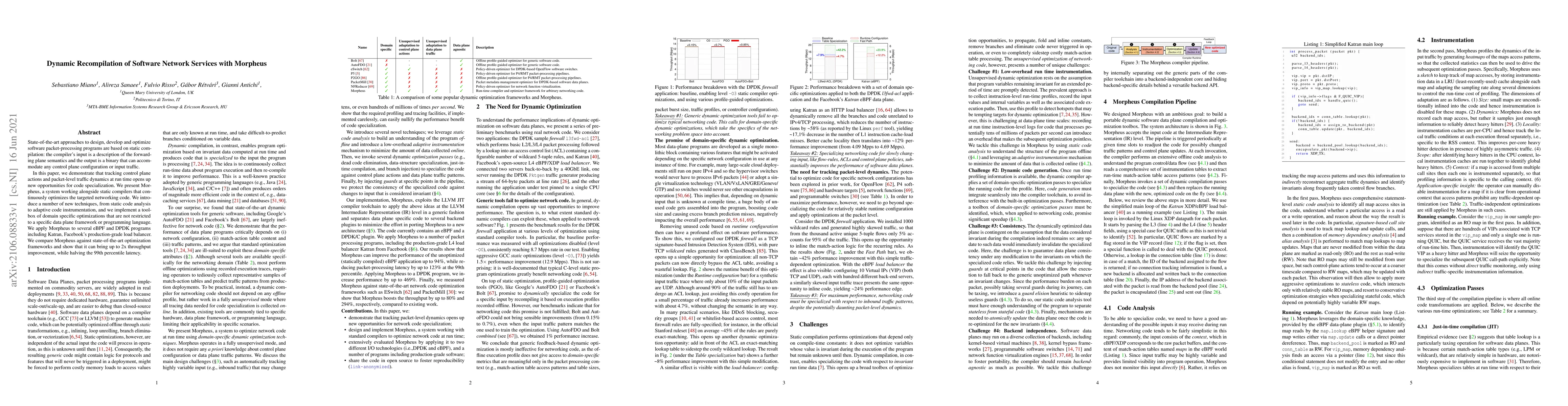 Morpheus optimizes software packet-processing programs at runtime for up to 2x throughput improvement and halved latency, overcoming limitations of static compilation approaches.