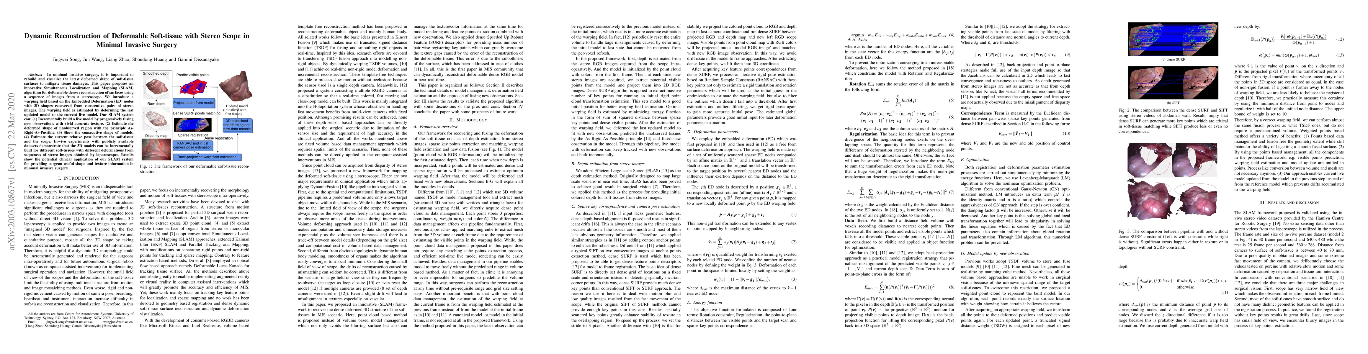 This paper proposes a SLAM algorithm for real-time reconstruction of deformable soft-tissue surfaces in minimal invasive surgery using stereoscope images. The method incrementally builds a live model by fusing new observations and estimates the deformed shape of unobserved regions, demonstrating potential clinical applications.