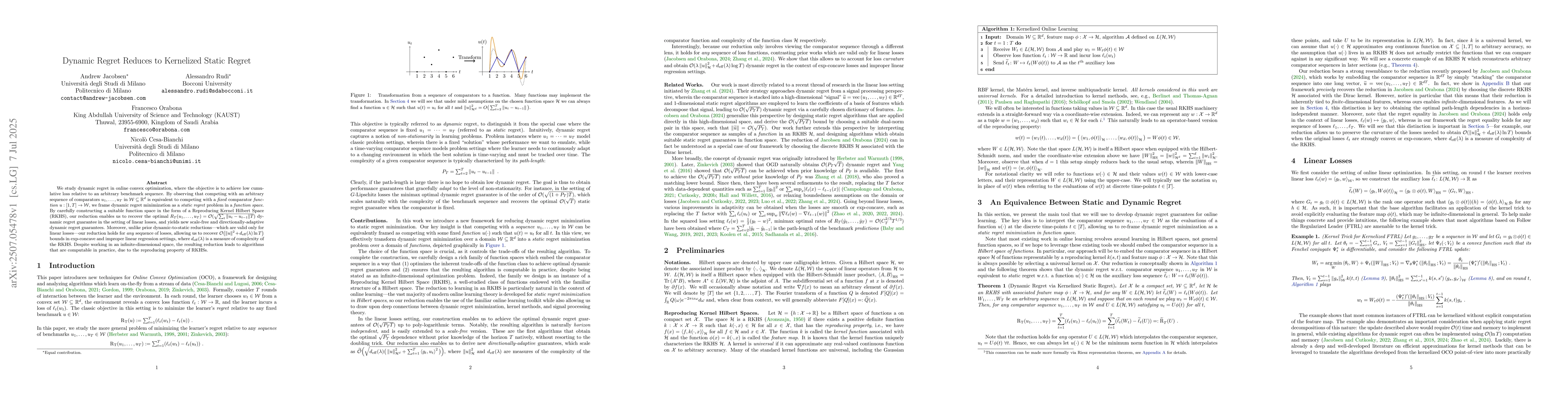 We study dynamic regret in online convex optimization, where the objective is to achieve low cumulative loss relative to an arbitrary benchmark sequence. By observing that competing with an arbitrary sequence of comparators $u_{1},\ldots,u_{T}$ in $\mathcal{W}\subseteq\mathbb{R}^{d}$ is equivalent to competing with a fixed comparator function $u:[1,T]\to \mathcal{W}$, we frame dynamic regret minimization as a static regret problem in a function space. By carefully constructing a suitable function space in the form of a Reproducing Kernel Hilbert Space (RKHS), our reduction enables us to recover the optimal $R_{T}(u_{1},\ldots,u_{T}) = \mathcal{O}(\sqrt{\sum_{t}\|u_{t}-u_{t-1}\|T})$ dynamic regret guarantee in the setting of linear losses, and yields new scale-free and directionally-adaptive dynamic regret guarantees. Moreover, unlike prior dynamic-to-static reductions -- which are valid only for linear losses -- our reduction holds for any sequence of losses, allowing us to recover $\mathcal{O}\big(\|u\|^2+d_{\mathrm{eff}}(\lambda)\ln T\big)$ bounds in exp-concave and improper linear regression settings, where $d_{\mathrm{eff}}(\lambda)$ is a measure of complexity of the RKHS. Despite working in an infinite-dimensional space, the resulting reduction leads to algorithms that are computable in practice, due to the reproducing property of RKHSs.