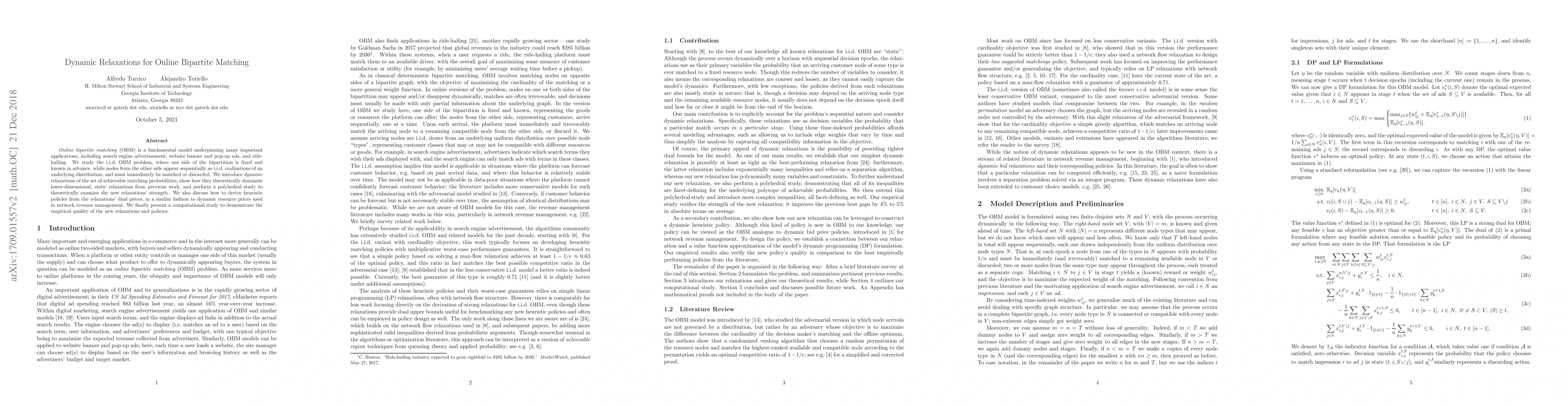 Online bipartite matching (OBM) is a fundamental model underpinning many important applications, including search engine advertisement, website banner and pop-up ads, and ride-hailing. We study the i.i.d. OBM problem, where one side of the bipartition is fixed and known in advance, while nodes from the other side appear sequentially as i.i.d. realizations of an underlying distribution, and must immediately be matched or discarded. We introduce dynamic relaxations of the set of achievable matching probabilities, show how they theoretically dominate lower-dimensional, static relaxations from previous work, and perform a polyhedral study to theoretically examine the new relaxations' strength. We also discuss how to derive heuristic policies from the relaxations' dual prices, in a similar fashion to dynamic resource prices used in network revenue management. We finally present a computational study to demonstrate the empirical quality of the new relaxations and policies.