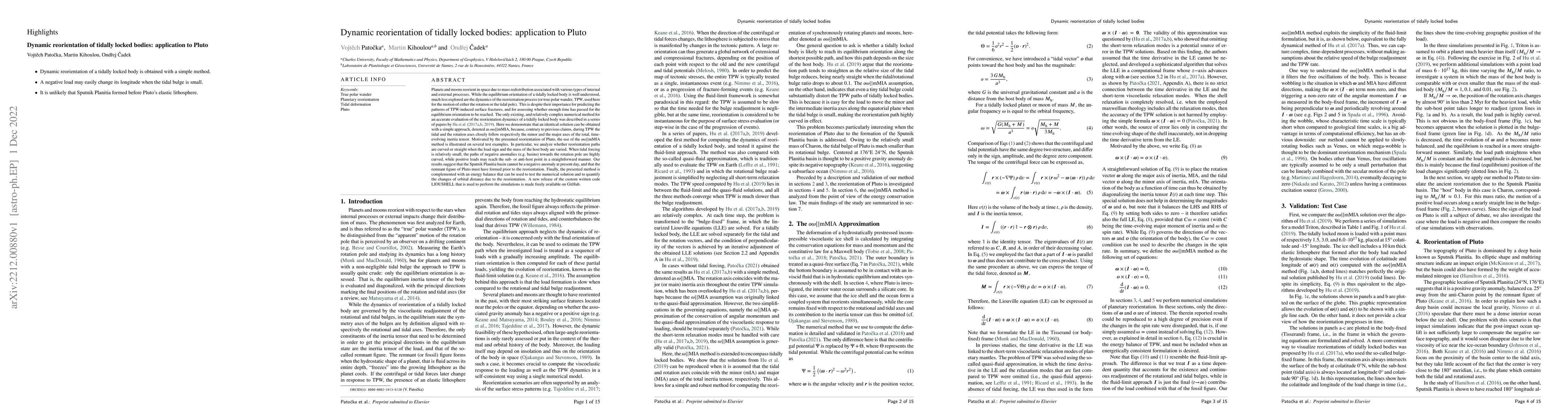 This paper explores the dynamics of true polar wander (TPW) in tidally locked bodies, proposing a simpler method (ow||mMIA) for accurate evaluation compared to previous complex numerical approaches. Using Pluto as a case study, it demonstrates that reorientation paths depend on load sign and mass, suggesting the Sputnik Planitia basin cannot be a current negative anomaly and that Pluto's remnant figure pre-dates its reorientation.