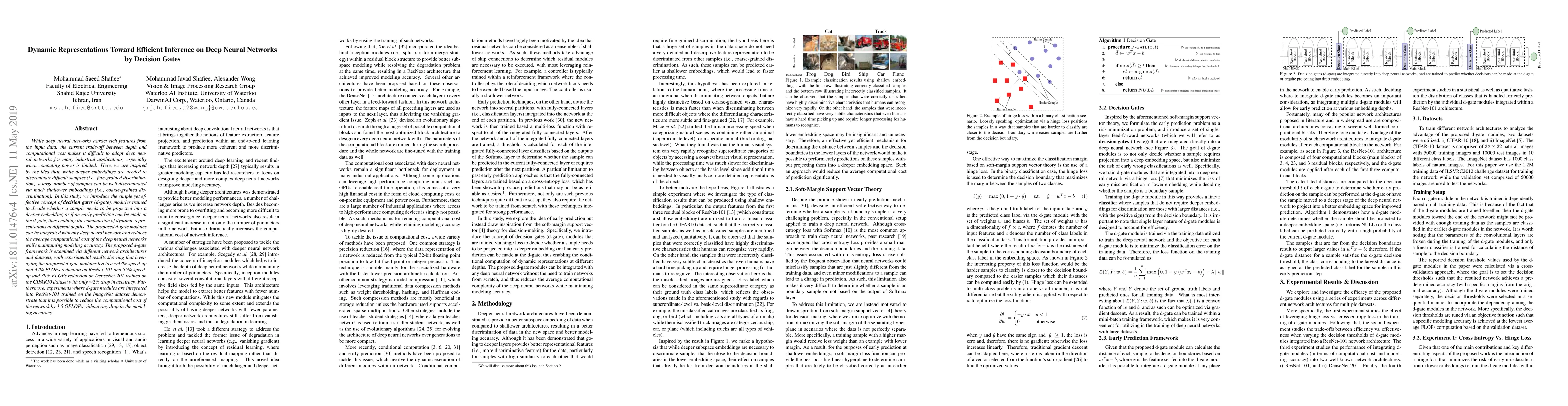 While deep neural networks extract rich features from the input data, the current trade-off between depth and computational cost makes it difficult to adopt deep neural networks for many industrial applications, especially when computing power is limited. Here, we are inspired by the idea that, while deeper embeddings are needed to discriminate difficult samples (i.e., fine-grained discrimination), a large number of samples can be well discriminated via much shallower embeddings (i.e., coarse-grained discrimination). In this study, we introduce the simple yet effective concept of decision gates (d-gate), modules trained to decide whether a sample needs to be projected into a deeper embedding or if an early prediction can be made at the d-gate, thus enabling the computation of dynamic representations at different depths. The proposed d-gate modules can be integrated with any deep neural network and reduces the average computational cost of the deep neural networks while maintaining modeling accuracy. The proposed d-gate framework is examined via different network architectures and datasets, with experimental results showing that leveraging the proposed d-gate modules led to a ~43% speed-up and 44% FLOPs reduction on ResNet-101 and 55% speed-up and 39% FLOPs reduction on DenseNet-201 trained on the CIFAR10 dataset with only ~2% drop in accuracy. Furthermore, experiments where d-gate modules are integrated into ResNet-101 trained on the ImageNet dataset demonstrate that it is possible to reduce the computational cost of the network by 1.5 GFLOPs without any drop in the modeling accuracy.