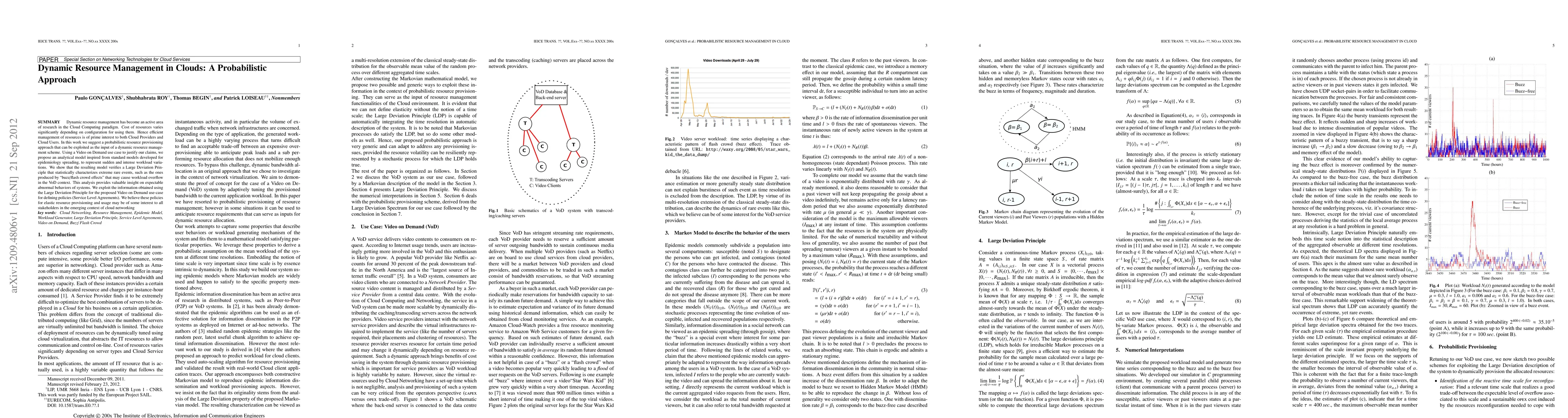 This research proposes a probabilistic resource provisioning approach for dynamic management in cloud computing, using a Video on Demand use case. It introduces an analytical model based on epidemiology spreading models to handle intense workload variations, verifying a Large Deviation Principle for predicting rare, extreme events like 'buzz/flash crowd effects'. The findings help define elastic resource provisioning policies, benefiting cloud stakeholders.