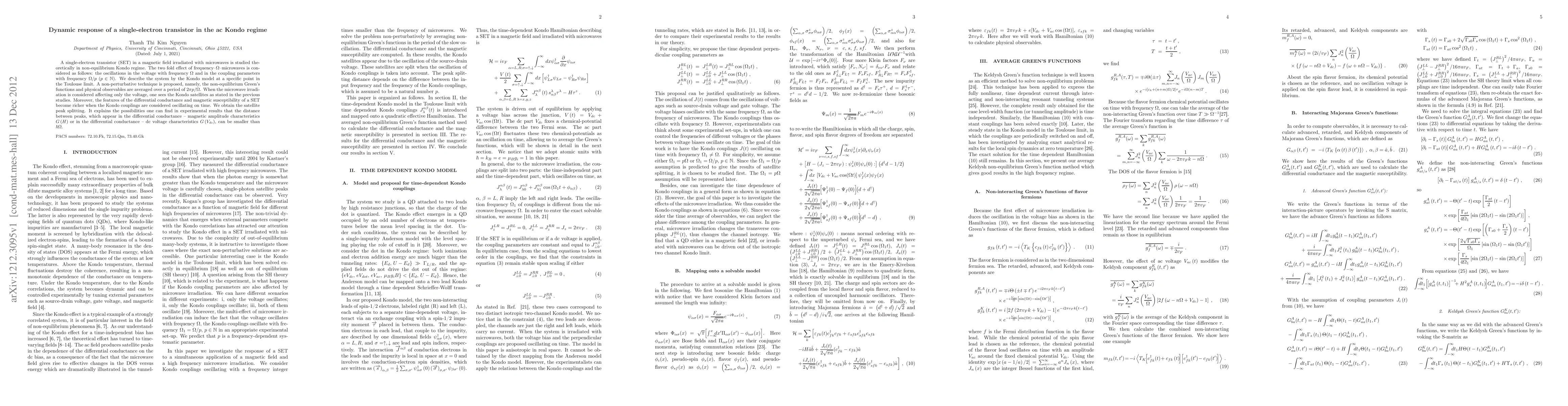 This paper investigates the dynamic response of a single-electron transistor in the ac Kondo regime under microwave irradiation, focusing on the effects of oscillating voltage and coupling parameters. The study reveals richer features in differential conductance and magnetic susceptibility, including satellite peak splitting, which can result in peak distances smaller than \hbar\Omega.