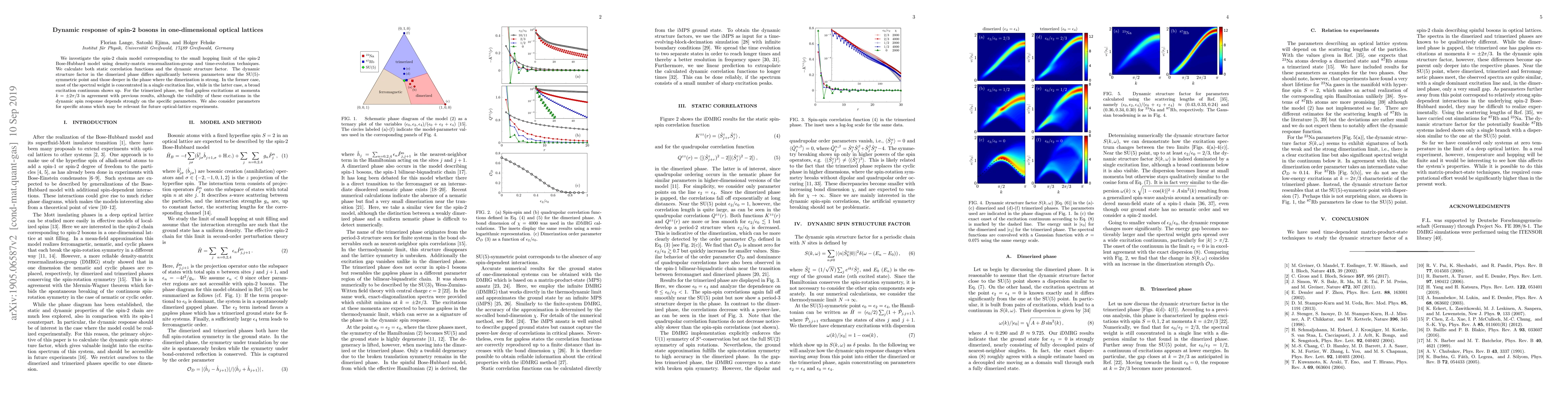Researchers studied spin-2 bosons in one-dimensional optical lattices, finding that dynamic structure factors show significant differences between phases of dimerization and trimerization, with some excitations appearing gapless at specific momenta.