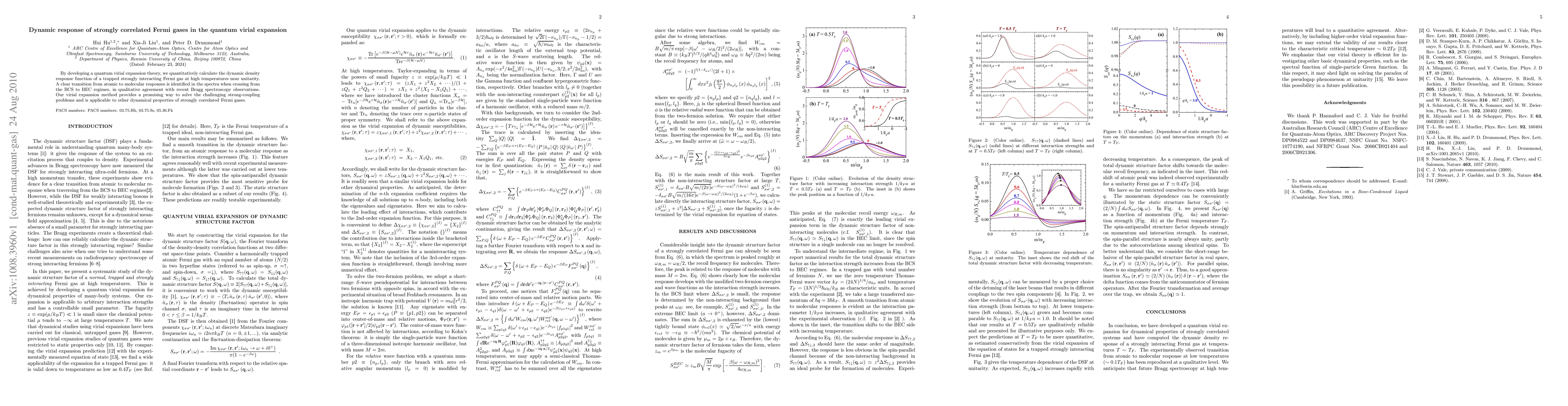 This paper develops a quantum virial expansion theory to calculate the dynamic density response function of strongly interacting Fermi gases at high temperatures, identifying a transition from atomic to molecular responses in the BCS to BEC regimes, in agreement with recent observations. The method offers a promising approach to solving strong-coupling problems in strongly correlated Fermi gases.