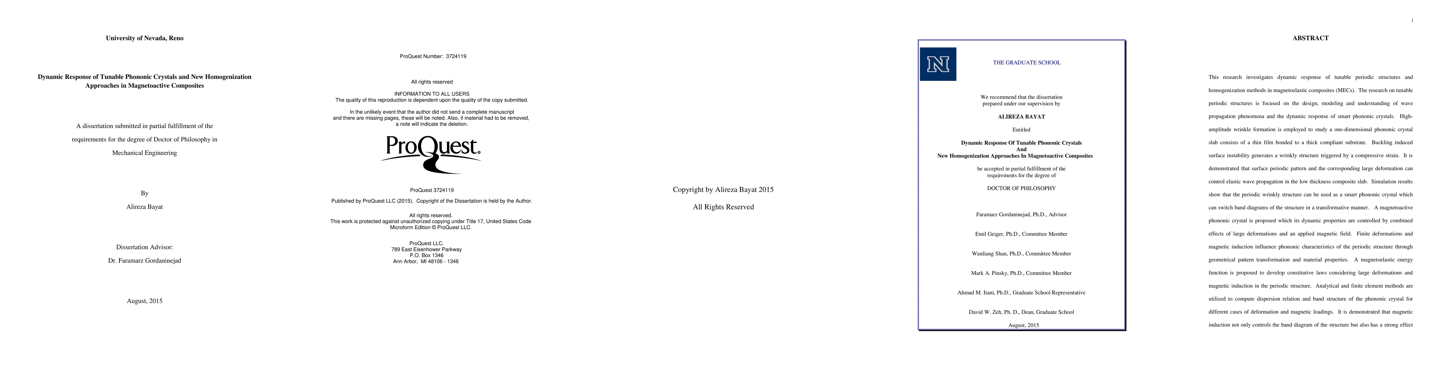 This research investigates dynamic response of tunable periodic structures and homogenization methods in magnetoelastic composites (MECs). The research on tunable periodic structures is focused on the design, modeling and understanding of wave propagation phenomena and the dynamic response of smart phononic crystals. High amplitude wrinkle formation is employed to study a one-dimensional phononic crystal slab consists of a thin film bonded to a thick compliant substrate. Buckling induced surface instability generates a wrinkly structure triggered by a compressive strain. It is demonstrated that surface periodic pattern and the corresponding large deformation can control elastic wave propagation in the low thickness composite slab. Simulation results show that the periodic wrinkly structure can be used as a smart phononic crystal which can switch band diagrams of the structure in a transformative manner. A magnetoactive phononic crystal is proposed which its dynamic properties are controlled by combined effects of large deformations and an applied magnetic field. Finite deformations and magnetic induction influence phononic characteristics of the periodic structure through geometrical pattern transformation and material properties. A magnetoelastic energy function is proposed to develop constitutive laws considering large deformations and magnetic induction in the periodic structure. Analytical and finite element methods are utilized to compute dispersion relation and band structure of the phononic crystal for different cases of deformation and magnetic loadings. It is demonstrated that magnetic induction not only controls the band diagram of the structure but also has a strong effect on preferential directions of wave propagation. Moreover, a thermally controlled phononic crystal is designed using ligaments of bi-materials in the structure.