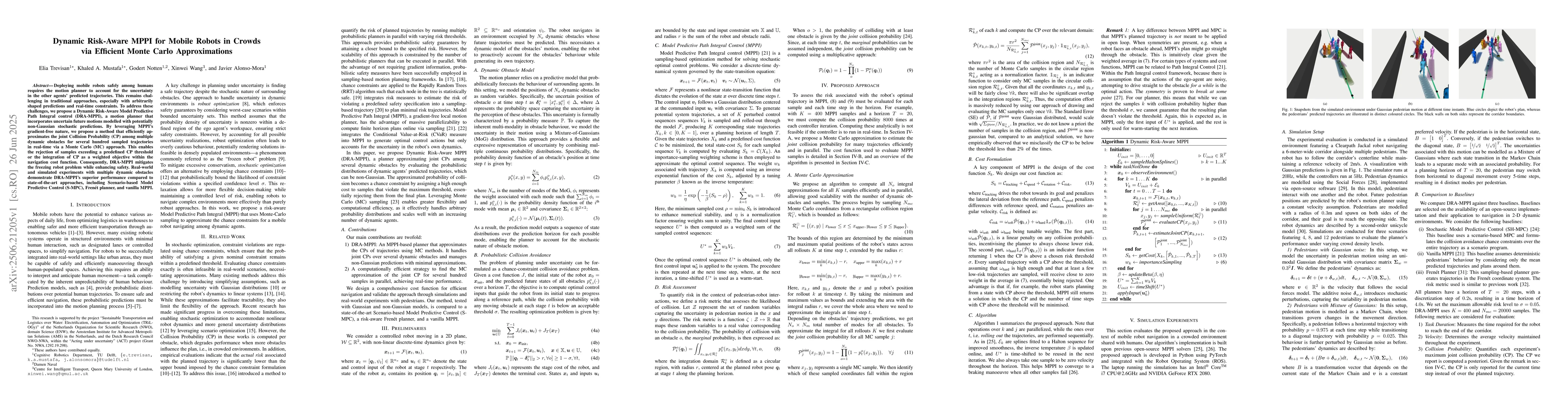 Deploying mobile robots safely among humans requires the motion planner to account for the uncertainty in the other agents' predicted trajectories. This remains challenging in traditional approaches, especially with arbitrarily shaped predictions and real-time constraints. To address these challenges, we propose a Dynamic Risk-Aware Model Predictive Path Integral control (DRA-MPPI), a motion planner that incorporates uncertain future motions modelled with potentially non-Gaussian stochastic predictions. By leveraging MPPI's gradient-free nature, we propose a method that efficiently approximates the joint Collision Probability (CP) among multiple dynamic obstacles for several hundred sampled trajectories in real-time via a Monte Carlo (MC) approach. This enables the rejection of samples exceeding a predefined CP threshold or the integration of CP as a weighted objective within the navigation cost function. Consequently, DRA-MPPI mitigates the freezing robot problem while enhancing safety. Real-world and simulated experiments with multiple dynamic obstacles demonstrate DRA-MPPI's superior performance compared to state-of-the-art approaches, including Scenario-based Model Predictive Control (S-MPC), Frenet planner, and vanilla MPPI.