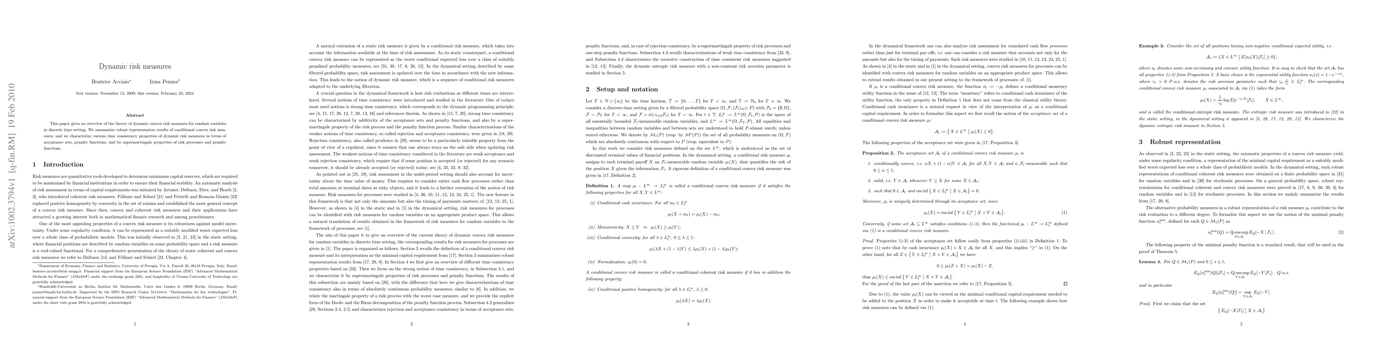 This paper reviews the theory of dynamic convex risk measures for discrete-time random variables, summarizing robust representation results and characterizing time consistency properties through acceptance sets, penalty functions, and supermartingale properties.