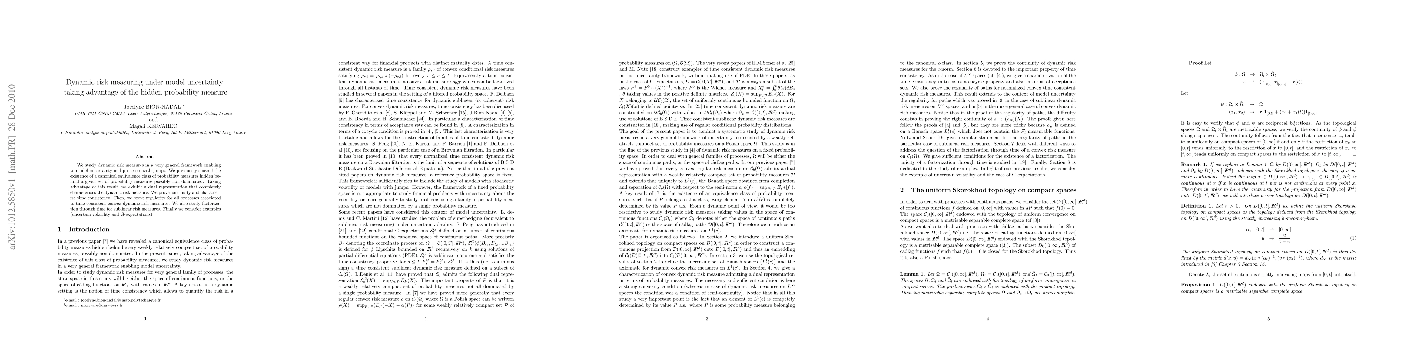 The paper studies dynamic risk measures under model uncertainty, utilizing a general framework that accommodates uncertainty and jump processes. It builds on previous work, introducing a dual representation that fully characterizes the dynamic risk measure, proving its continuity, and characterizing time consistency.
