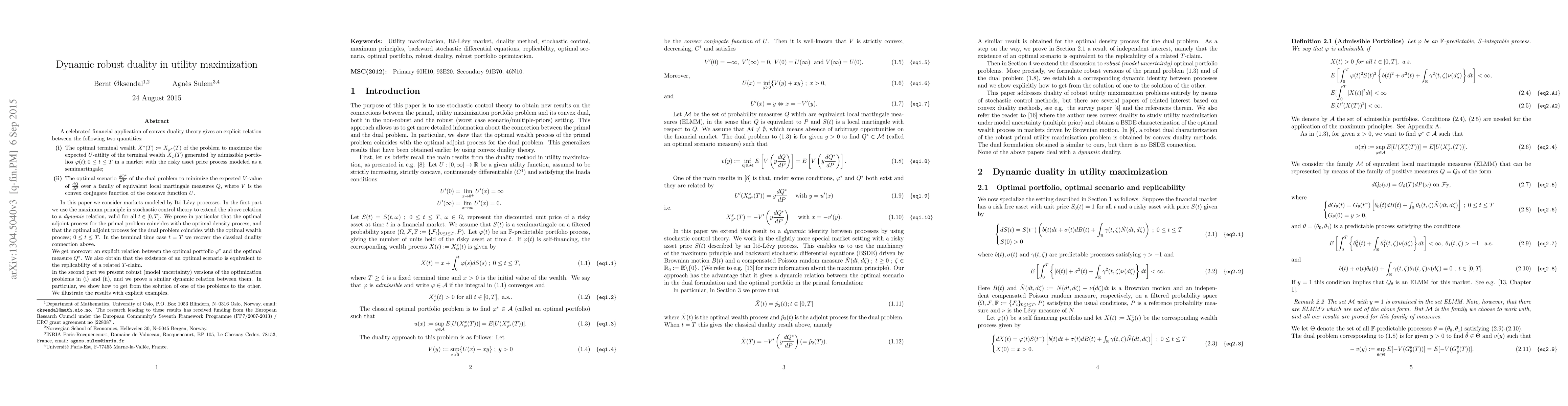 This research paper establishes a dynamic robust duality relation in utility maximization problems for markets with It exto-L exteacutevy processes, bridging primal and dual problems under model uncertainty.