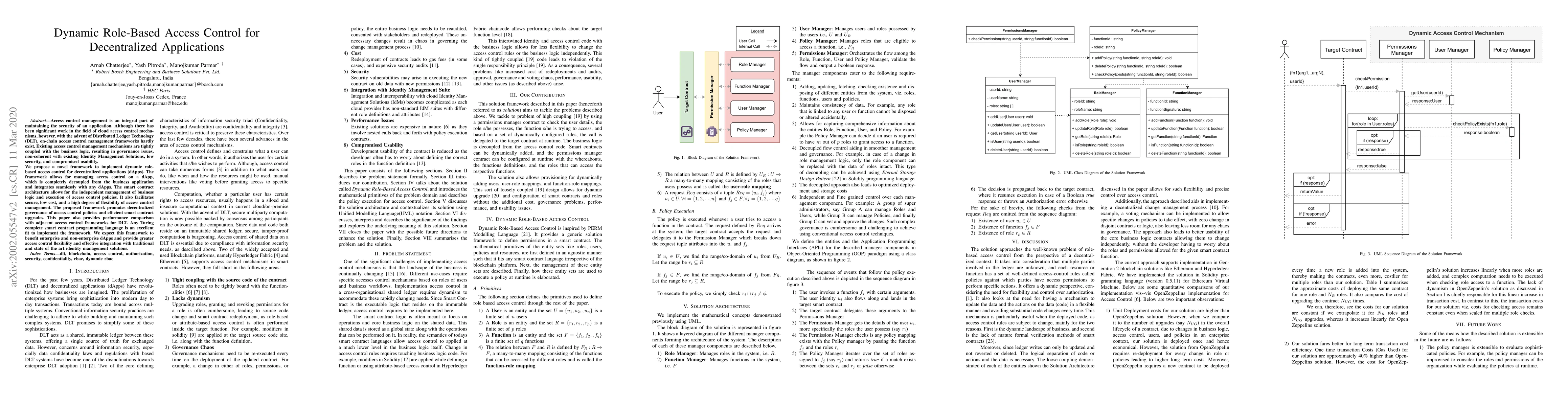 This paper proposes a novel framework for dynamic role-based access control in decentralized applications (dApps), decoupling access control from business logic to enhance security and governance. The framework utilizes smart contracts for flexible, secure, and cost-effective management, promoting decentralized governance and efficient upgrades.