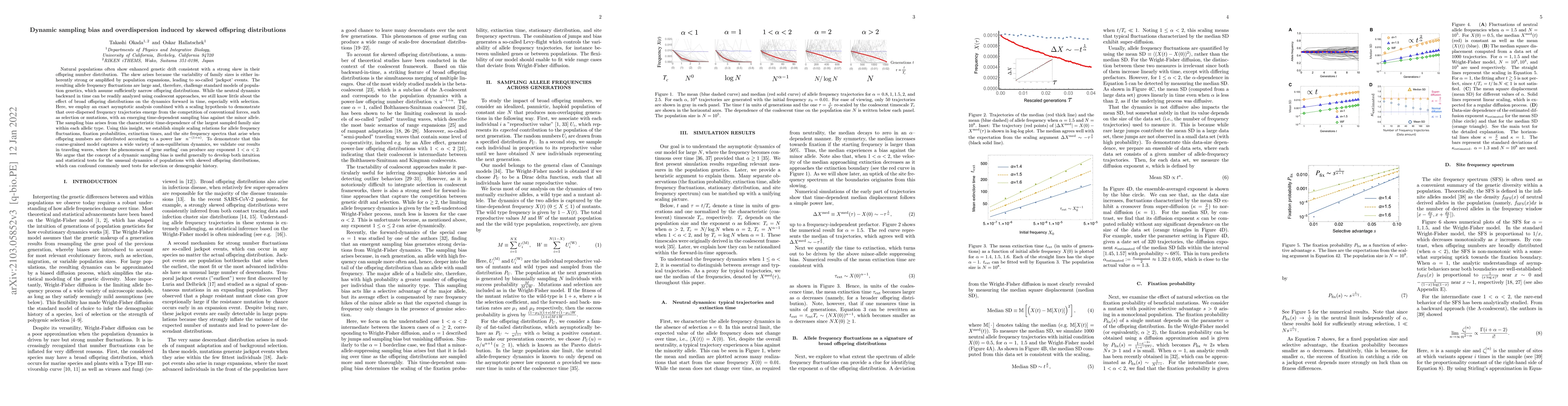 A study shows that populations with skewed offspring distributions can lead to dynamic sampling bias and overdispersion in allele frequency dynamics, challenging standard population genetics models. The researchers develop a coarse-grained model capturing non-equilibrium dynamics and provide scaling relations for key population processes.