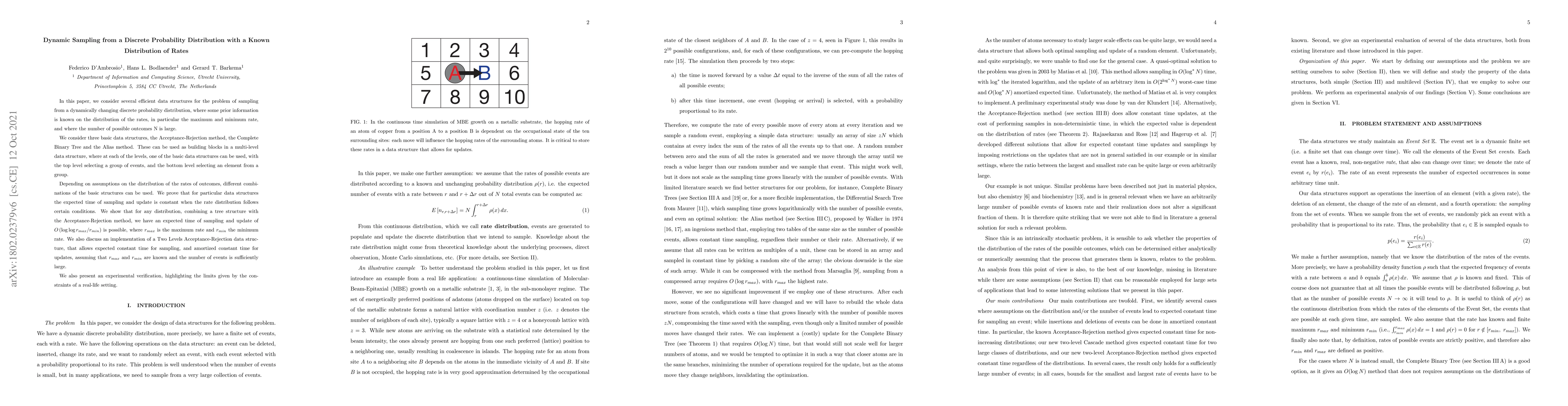 In this paper, we consider several efficient data structures for the problem of sampling from a dynamically changing discrete probability distribution, where some prior information is known on the distribution of the rates, in particular the maximum and minimum rate, and where the number of possible outcomes N is large. We consider three basic data structures, the Acceptance-Rejection method, the Complete Binary Tree and the Alias method. These can be used as building blocks in a multi-level data structure, where at each of the levels, one of the basic data structures can be used, with the top level selecting a group of events, and the bottom level selecting an element from a group. Depending on assumptions on the distribution of the rates of outcomes, different combinations of the basic structures can be used. We prove that for particular data structures the expected time of sampling and update is constant when the rate distribution follows certain conditions. We show that for any distribution, combining a tree structure with the Acceptance-Rejection method, we have an expected time of sampling and update of $O\left(\log\log{r_{max}}/{r_{min}}\right)$ is possible, where $r_{max}$ is the maximum rate and $r_{min}$ the minimum rate. We also discuss an implementation of a Two Levels Acceptance-Rejection data structure, that allows expected constant time for sampling, and amortized constant time for updates, assuming that $r_{max}$ and $r_{min}$ are known and the number of events is sufficiently large. We also present an experimental verification, highlighting the limits given by the constraints of a real-life setting.