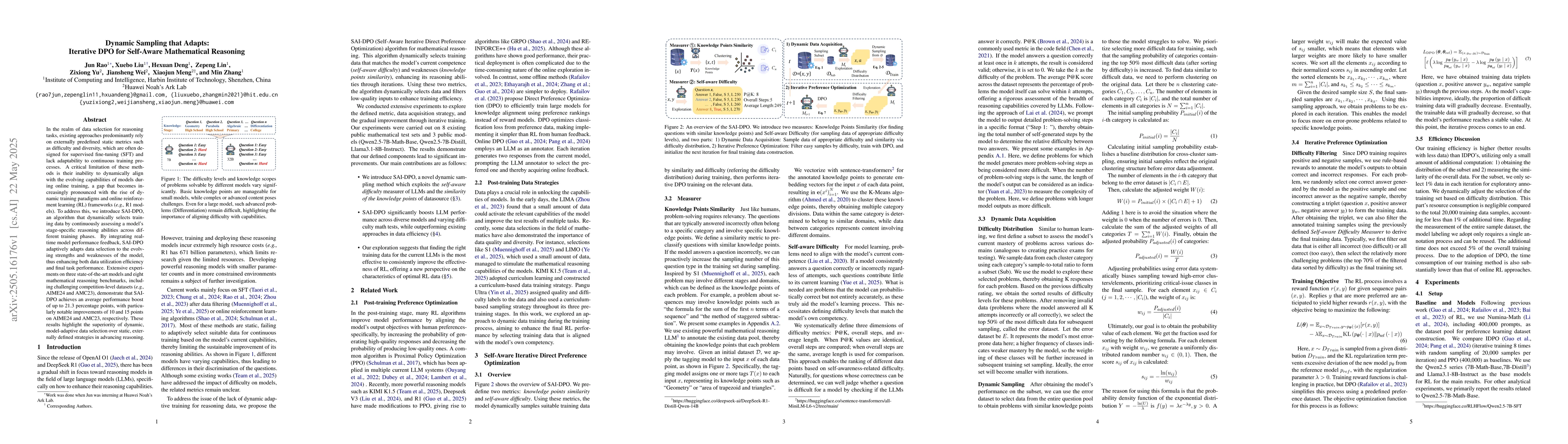 This paper introduces SAI-DPO, an algorithm that dynamically selects training data to adapt to a model's evolving strengths and weaknesses, achieving an average performance boost of up to 21.3 percentage points on mathematical reasoning benchmarks.