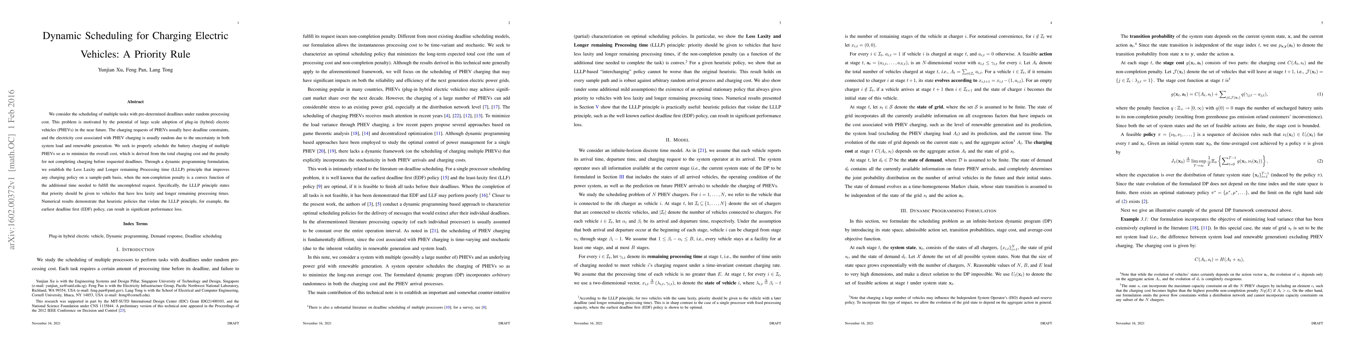 The research formulates the scheduling problem of charging multiple PHEVs as a Markov decision process, using dynamic programming and an interchange argument to prove the Less Laxity and Longer remaining Processing time (LLLP) principle.