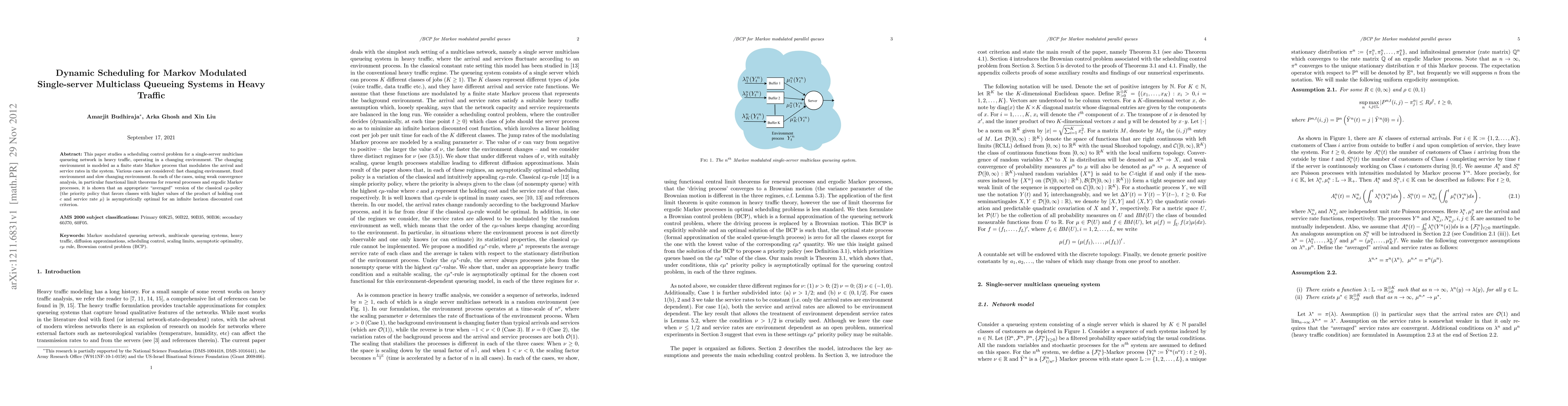 This paper investigates scheduling strategies for a single-server multiclass queueing system under varying environments, modeled as Markov processes. It demonstrates that an averaged version of the cμ-policy is asymptotically optimal for different environment change speeds, using weak convergence analysis.