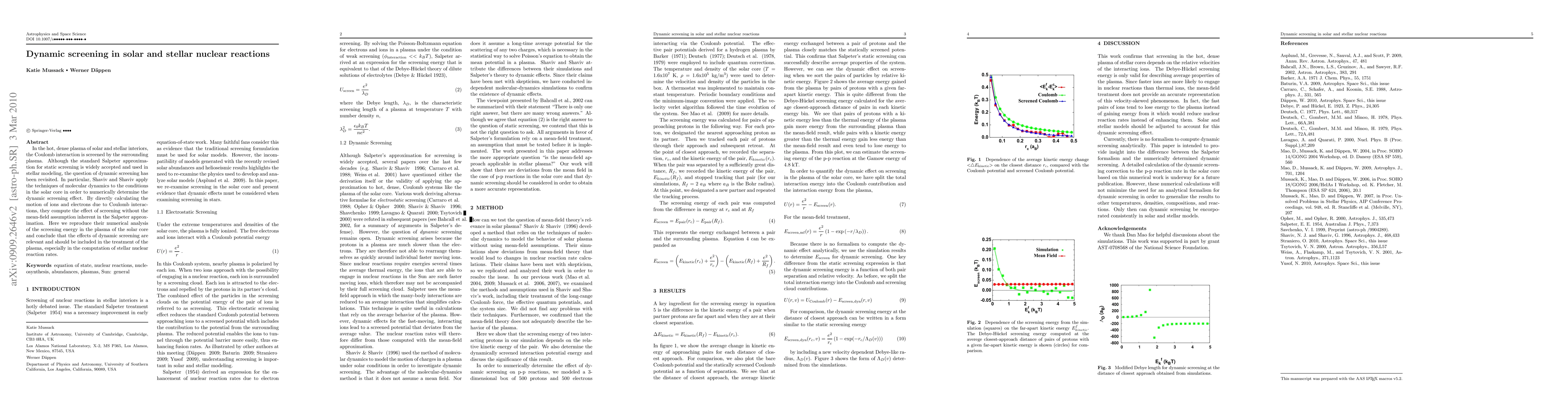 Researchers found that dynamic screening in solar and stellar nuclear reactions significantly affects plasma behavior, requiring it to be included in calculations for accurate results.