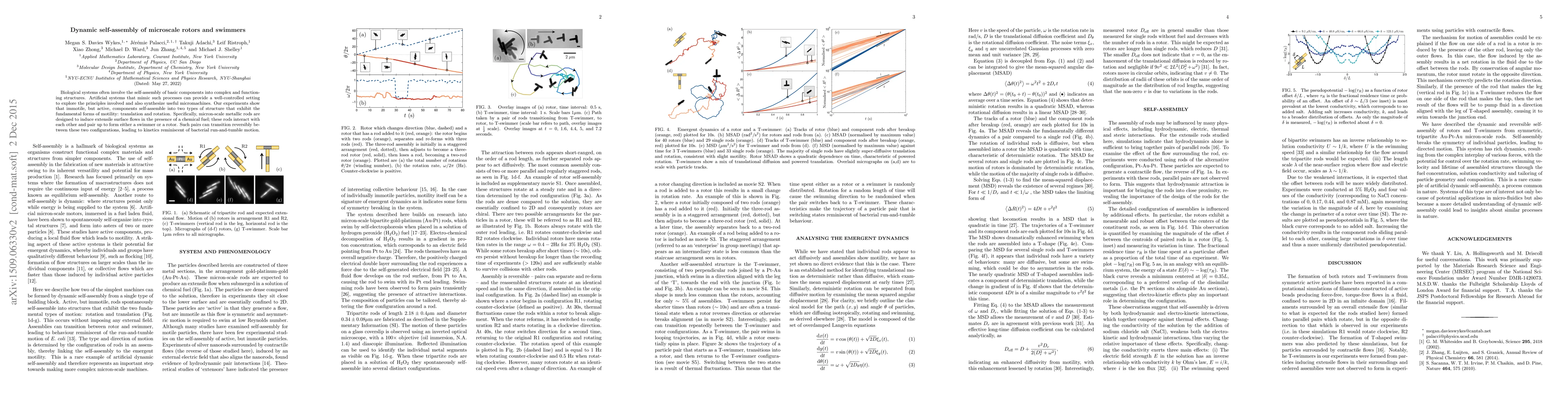 Microscopic metal rods self-assemble into swimmers and rotors that can transition between motion types, mimicking bacterial run-and-tumble motion. This discovery could lead to the development of controlled micromachines with specific functions.