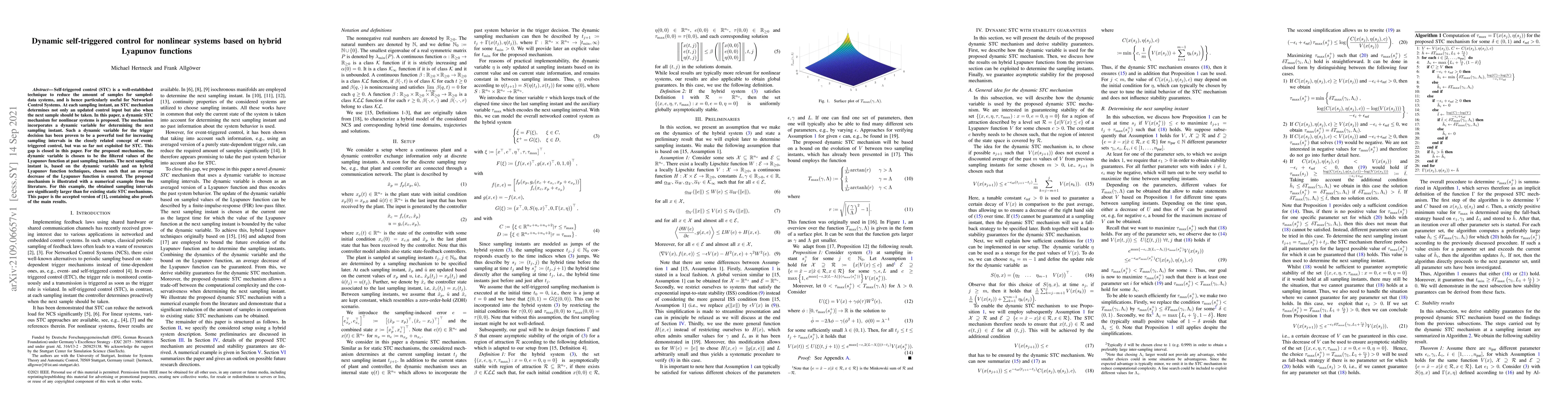 This paper proposes a dynamic self-triggered control mechanism for nonlinear systems using hybrid Lyapunov functions to determine sampling intervals. The dynamic variable, based on filtered Lyapunov values, ensures longer average intervals compared to static methods, as demonstrated by a numerical example.
