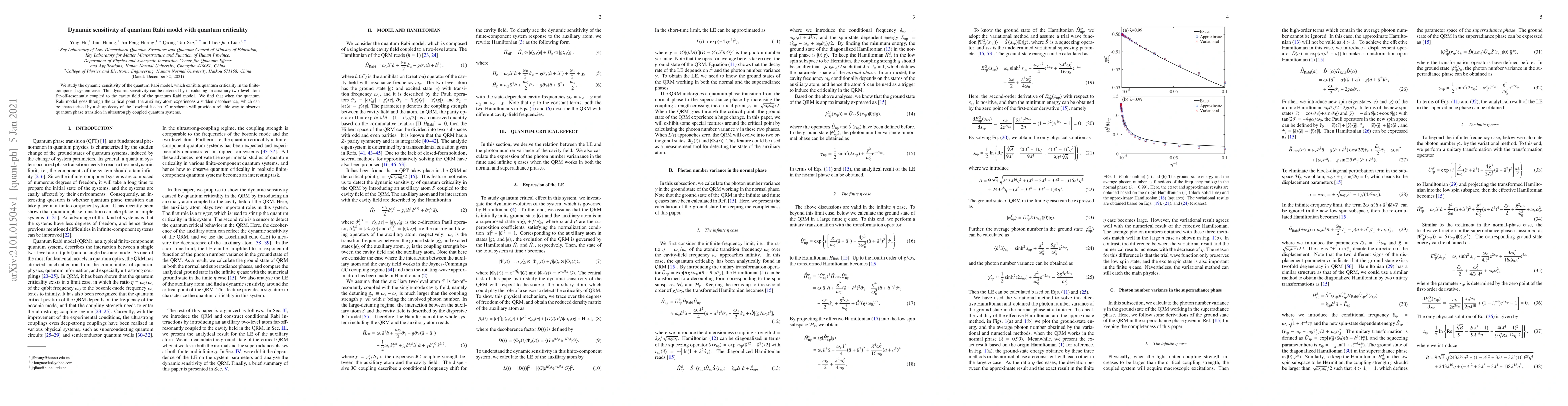 This paper investigates the dynamic sensitivity of the quantum Rabi model during quantum criticality, revealing that an auxiliary atom coupled to the system exhibits sudden decoherence at the critical point, characterized by a sharp decay in the Loschmidt echo, offering a reliable method to observe quantum phase transitions in ultrastrongly coupled systems.