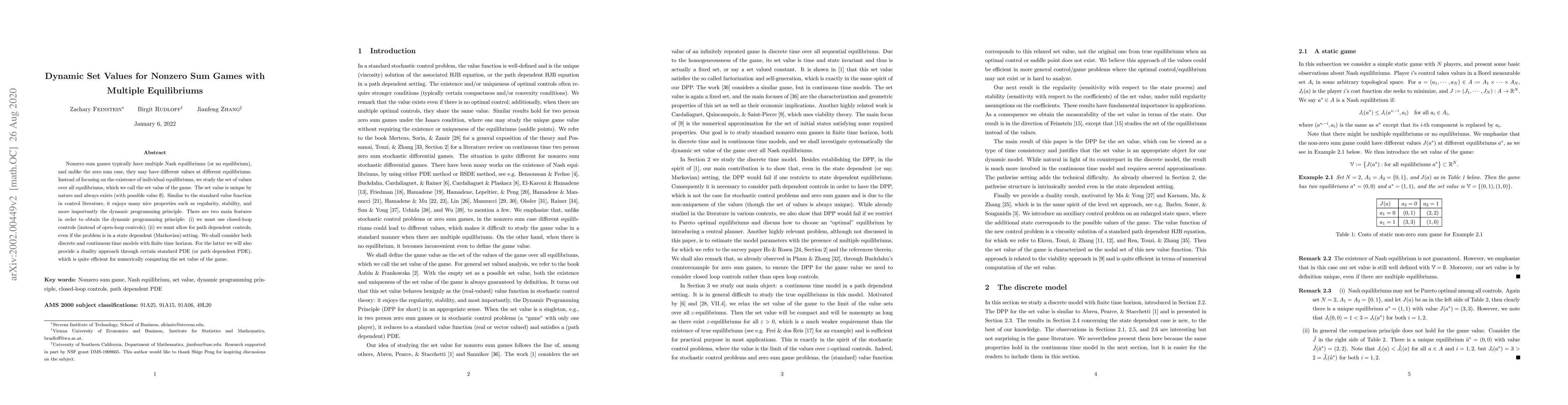 This paper explores the dynamic programming principle for nonzero sum games with multiple Nash equilibria, introducing a unique set value that exists for all such games. It emphasizes the necessity of closed-loop and path-dependent controls, and provides a duality approach using PDEs for efficient computation of the set value in continuous time models.