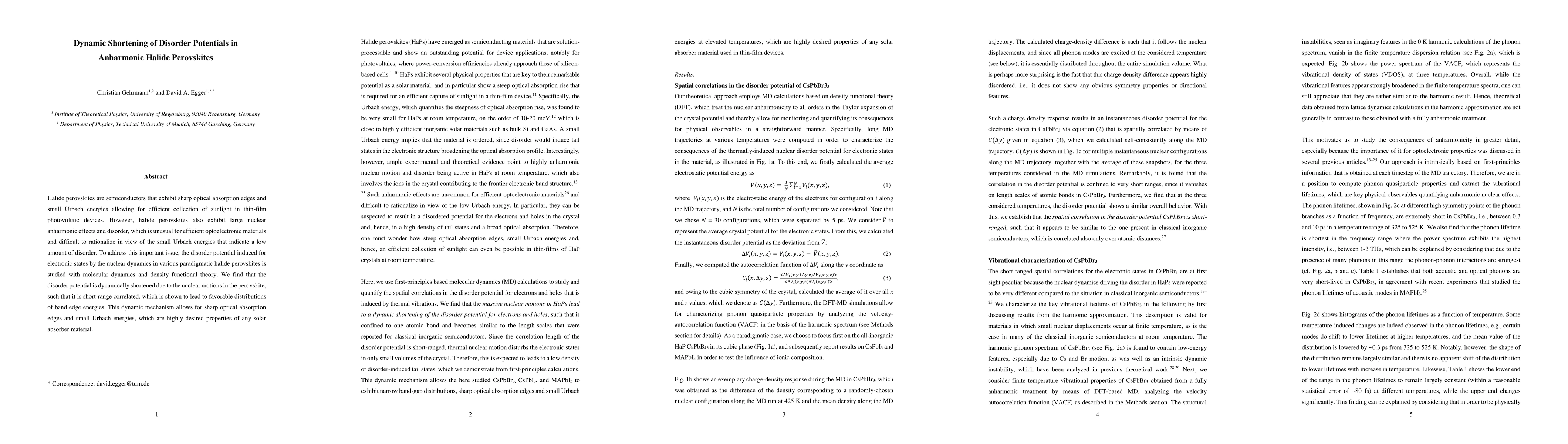 This paper investigates how nuclear anharmonic effects in halide perovskites lead to dynamically shortened disorder potentials via nuclear dynamics, which results in favorable band edge energy distributions, sharp optical absorption edges, and small Urbach energies, crucial for efficient solar absorber materials.