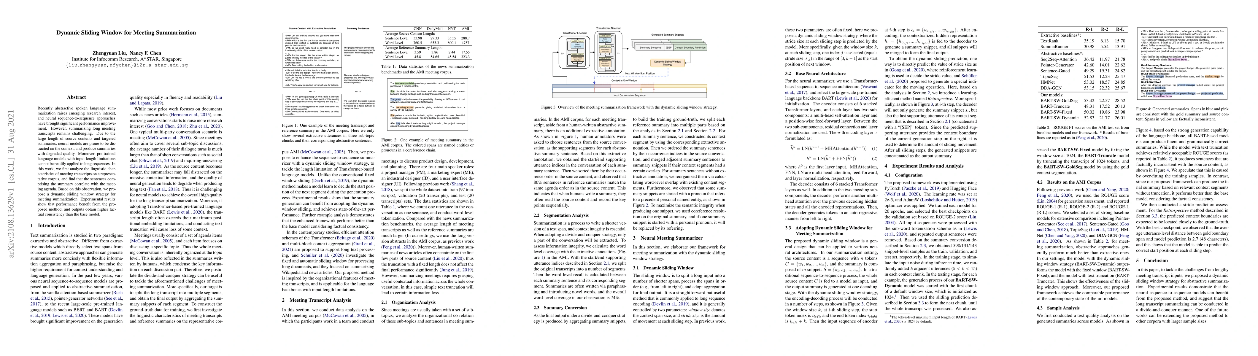 This paper proposes a dynamic sliding window strategy to improve meeting summarization using neural sequence-to-sequence models. The method addresses the challenge of summarizing long meeting transcripts by correlating summary sentences with the meeting agenda, leading to higher factual consistency compared to baseline models.