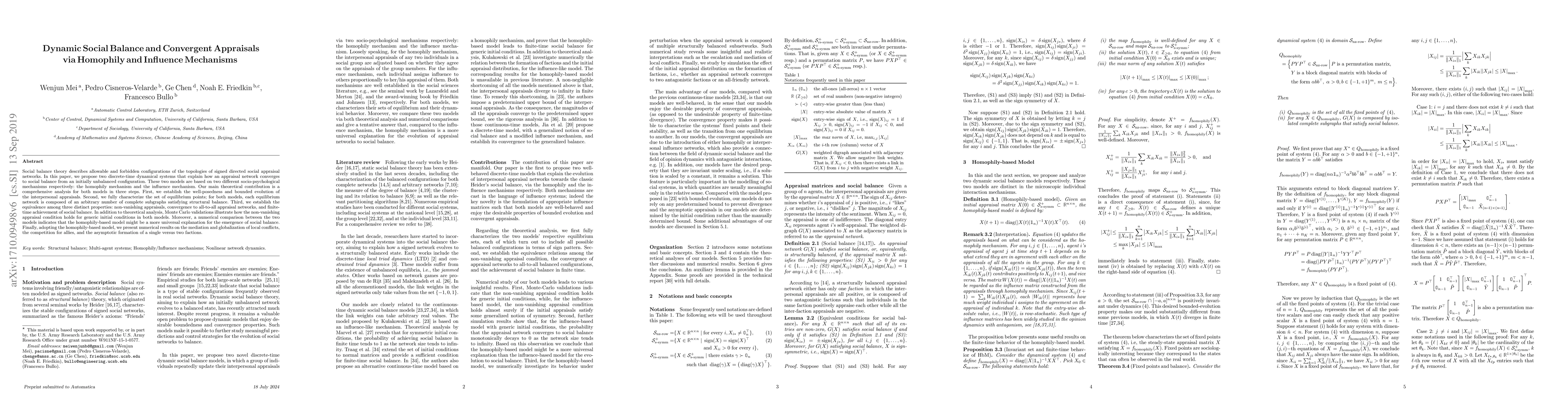 This paper proposes two dynamical systems to explain how social balance emerges in signed directed appraisal networks through homophily and influence mechanisms. It provides a comprehensive theoretical analysis, establishing equilibrium points and equivalence properties, and validates the models through Monte Carlo simulations, suggesting the homophily-based model may better explain social balance formation.