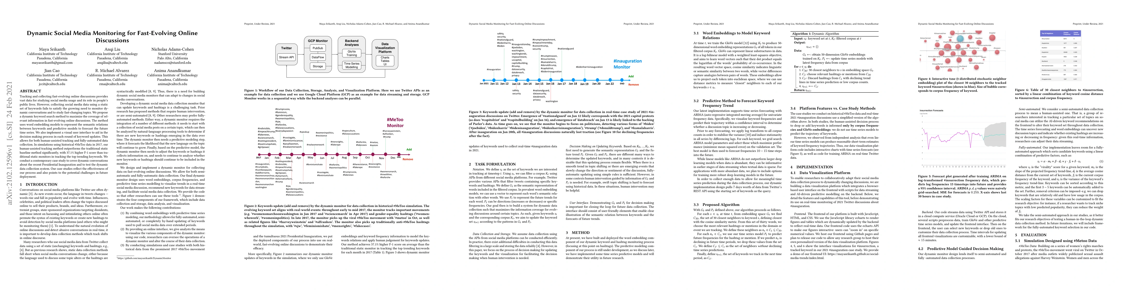 This paper proposes a dynamic keyword search method for tracking fast-evolving online discussions using word embeddings and predictive models, significantly outperforming static keyword methods in simulations. It also presents a visual interface for human-assisted tracking and fully automated data collection.