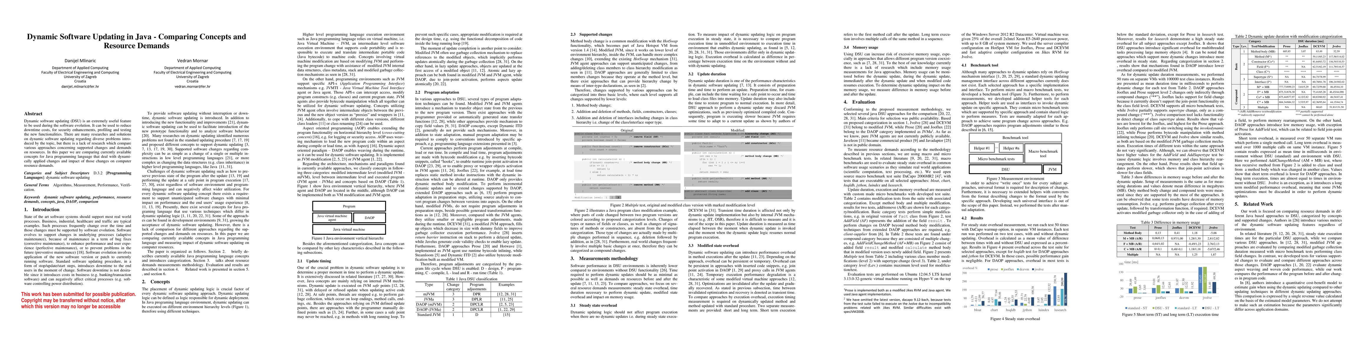 The paper compares various DSU concepts for Java by analyzing supported changes and resource demands.