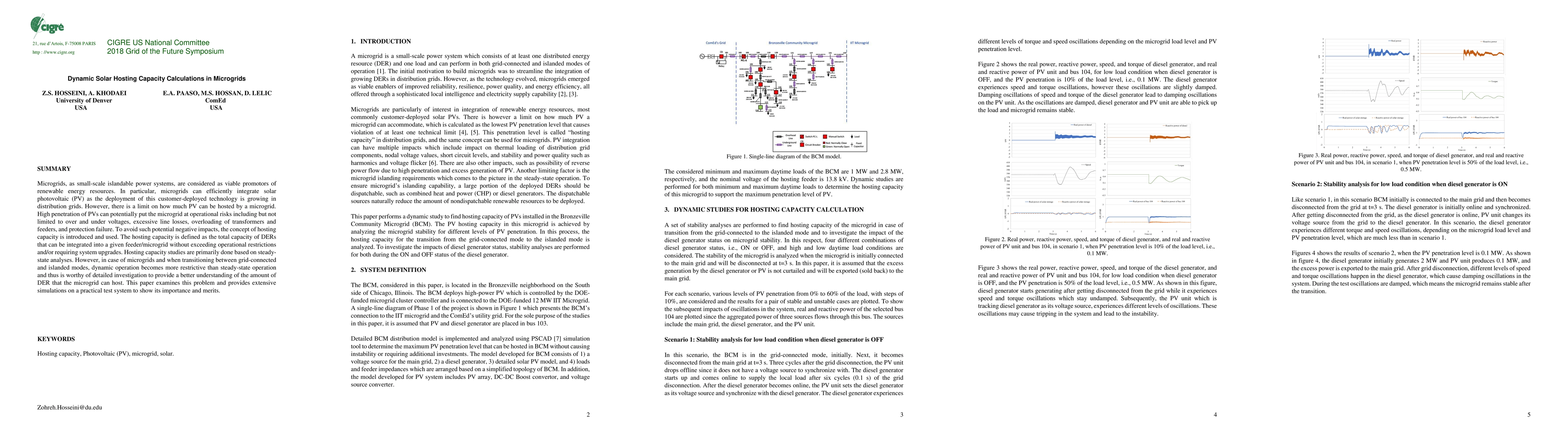Microgrids, as small-scale islandable power systems, are considered as viable promotors of renewable energy resources. In particular, microgrids can efficiently integrate solar photovoltaic (PV) as the deployment of this customer-deployed technology is growing in distribution grids. However, there is a limit on how much PV can be hosted by a microgrid. High penetration of PVs can potentially put the microgrid at operational risks including but not limited to over and under voltages, excessive line losses, overloading of transformers and feeders, and protection failure. To avoid such potential negative impacts, the concept of hosting capacity is introduced and used. The hosting capacity is defined as the total capacity of DERs that can be integrated into a given feeder/microgrid without exceeding operational restrictions and/or requiring system upgrades. Hosting capacity studies are primarily done based on steadystate analyses. However, in case of microgrids and when transitioning between grid-connected and islanded modes, dynamic operation becomes more restrictive than steady-state operation and thus is worthy of detailed investigation to provide a better understanding of the amount of DER that the microgrid can host. This paper examines this problem and provides extensive simulations on a practical test system to show its importance and merits.