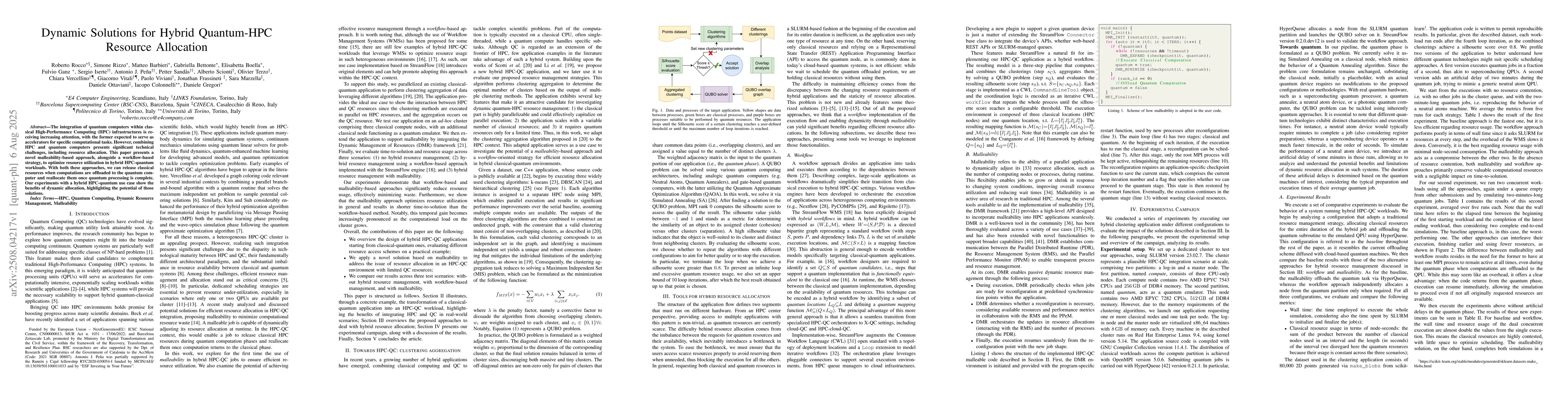 The integration of quantum computers within classical High-Performance Computing (HPC) infrastructures is receiving increasing attention, with the former expected to serve as accelerators for specific computational tasks. However, combining HPC and quantum computers presents significant technical challenges, including resource allocation. This paper presents a novel malleability-based approach, alongside a workflow-based strategy, to optimize resource utilization in hybrid HPC-quantum workloads. With both these approaches, we can release classical resources when computations are offloaded to the quantum computer and reallocate them once quantum processing is complete. Our experiments with a hybrid HPC-quantum use case show the benefits of dynamic allocation, highlighting the potential of those solutions.