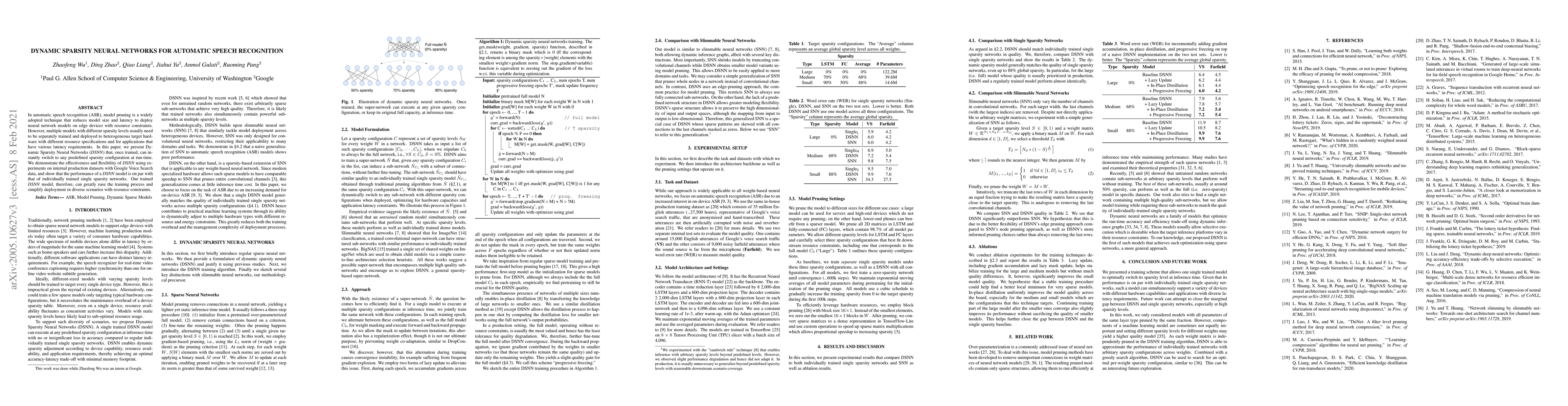 This paper introduces Dynamic Sparsity Neural Networks (DSNN) for automatic speech recognition, enabling instant switching between different sparsity levels at runtime without separate training. Experiments show that DSNN maintains performance comparable to individually trained models, simplifying deployment across various resource-constrained scenarios.