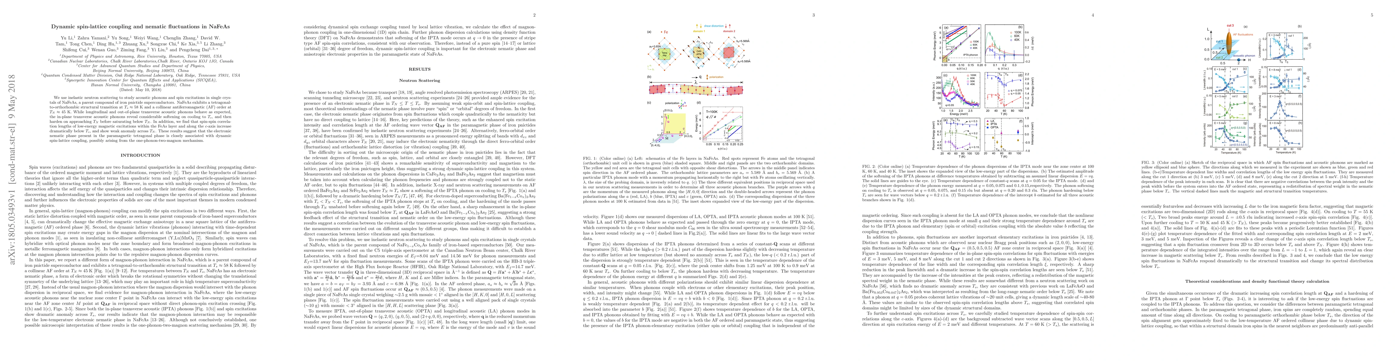 This study reveals dynamic spin-lattice coupling and nematic fluctuations in NaFeAs via inelastic neutron scattering, showing that in-plane transverse phonons soften before hardening near the magnetic ordering temperature, indicating a strong interplay between spin and lattice dynamics. The findings suggest a one-phonon-two-magnon mechanism linking the nematic phase to these dynamic couplings.