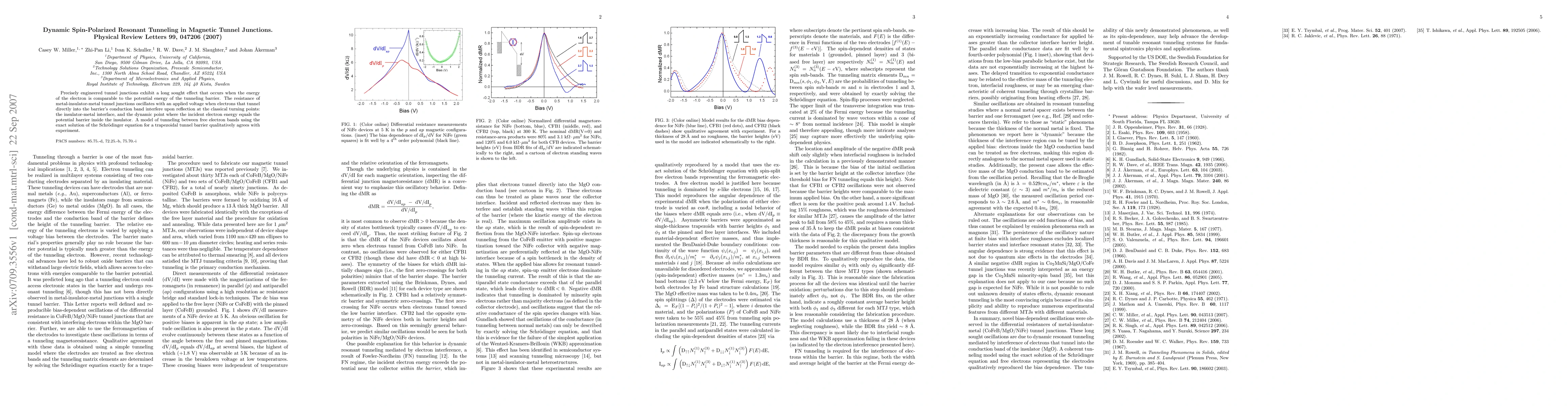 This paper investigates dynamic spin-polarized resonant tunneling in magnetic tunnel junctions, revealing oscillations in resistance due to electron interference at classical turning points. The model aligns well with experimental observations, confirming the effect using the exact Schrödinger equation solution for a trapezoidal barrier.