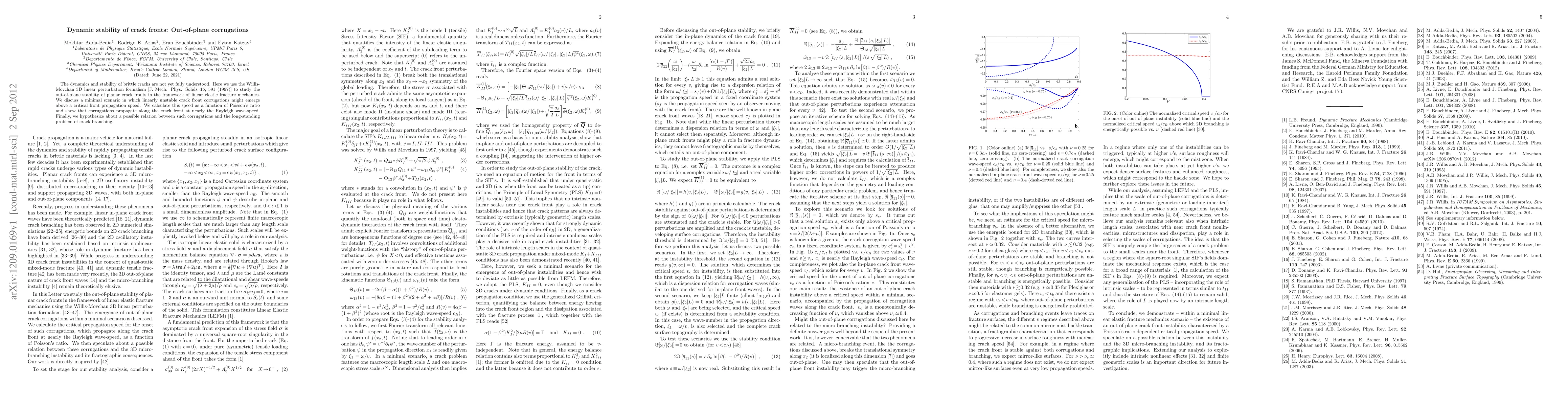 Researchers used a mathematical model to study how cracks in materials can become unstable and develop wavy patterns as they move, potentially leading to crack branching, and found that these waves travel at speeds similar to those of sound waves.