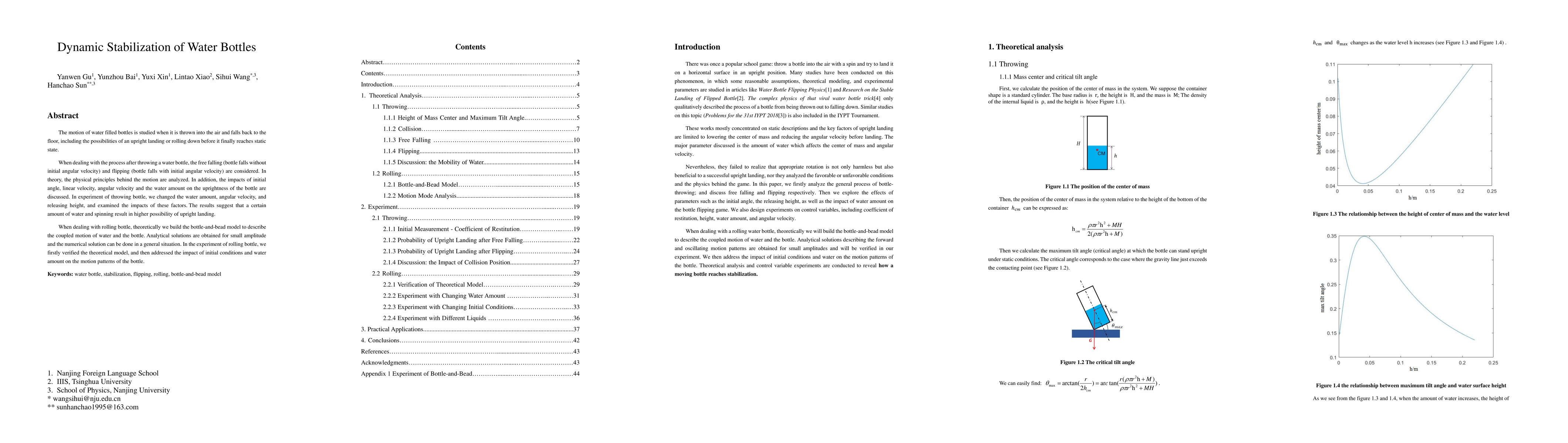 Researchers studied water bottles thrown into the air to explore factors affecting upright landing and rolling behavior, finding that a certain amount of water and spinning can increase the likelihood of an upright landing, while others factors impact rolling motion patterns.