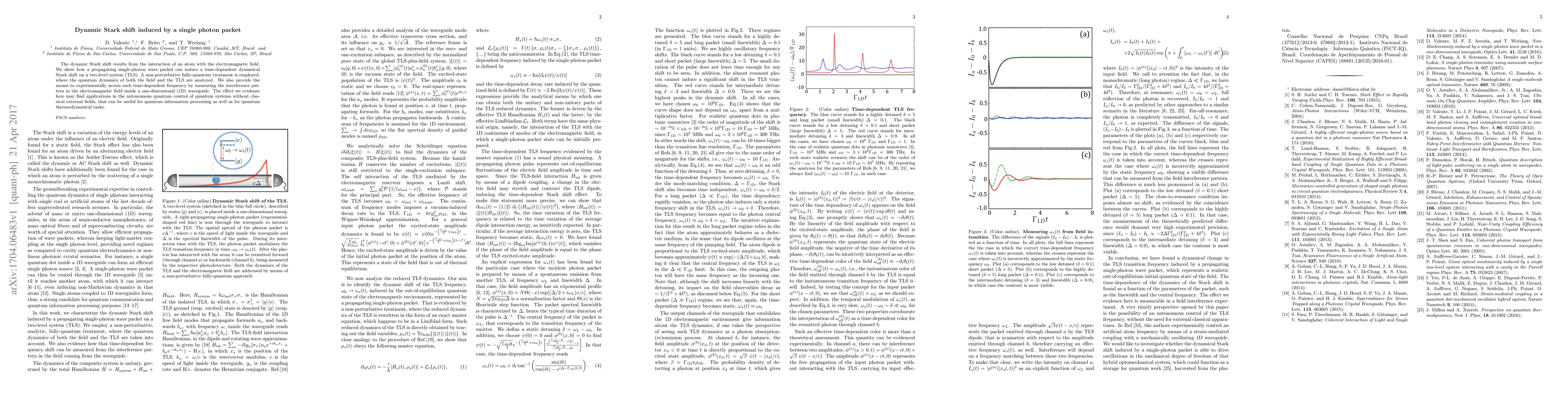 Researchers show that a single photon packet can induce a time-dependent Stark shift in an atom, which could lead to autonomous quantum control of quantum systems without classical external fields.
