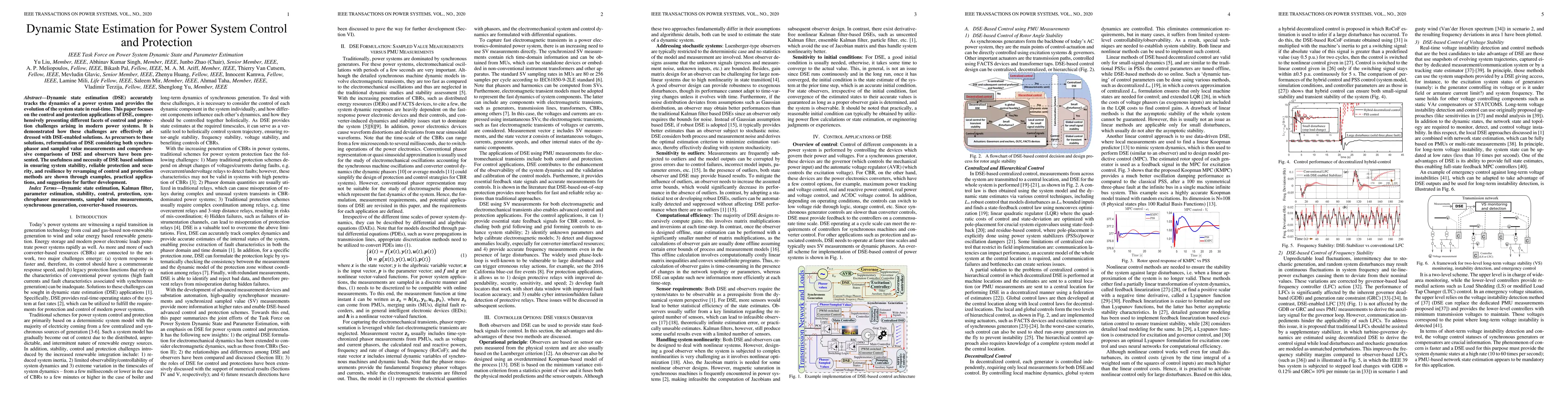 This paper explores dynamic state estimation (DSE) for real-time tracking of power system dynamics and its applications in control and protection. It reformulates DSE to integrate synchrophasor and sampled value measurements, demonstrating its necessity for enhancing system stability, protection, and resilience.