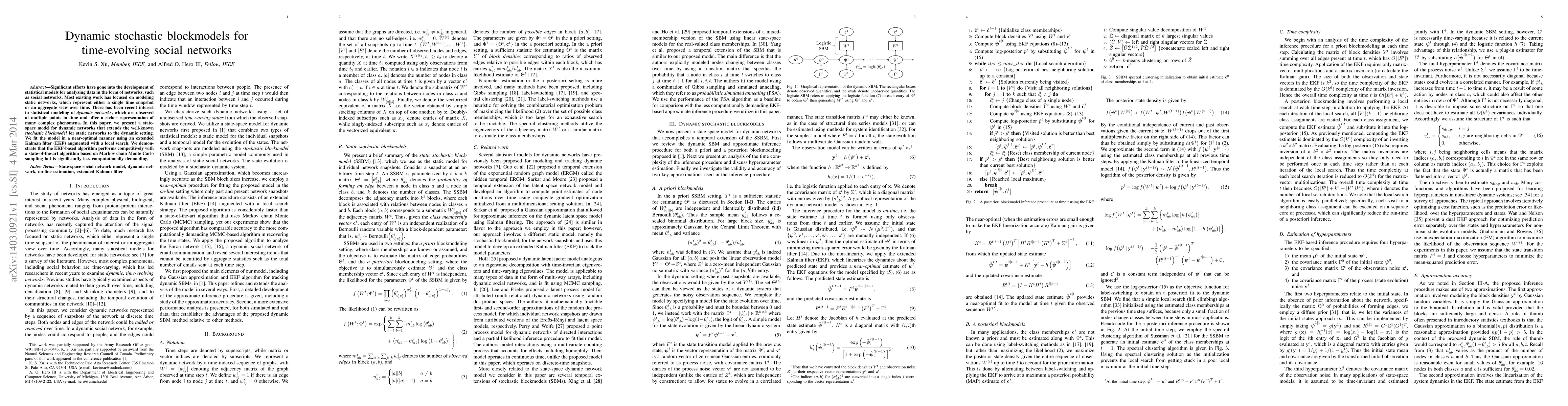 Significant efforts have gone into the development of statistical models for analyzing data in the form of networks, such as social networks. Most existing work has focused on modeling static networks, which represent either a single time snapshot or an aggregate view over time. There has been recent interest in statistical modeling of dynamic networks, which are observed at multiple points in time and offer a richer representation of many complex phenomena. In this paper, we present a state-space model for dynamic networks that extends the well-known stochastic blockmodel for static networks to the dynamic setting. We fit the model in a near-optimal manner using an extended Kalman filter (EKF) augmented with a local search. We demonstrate that the EKF-based algorithm performs competitively with a state-of-the-art algorithm based on Markov chain Monte Carlo sampling but is significantly less computationally demanding.
