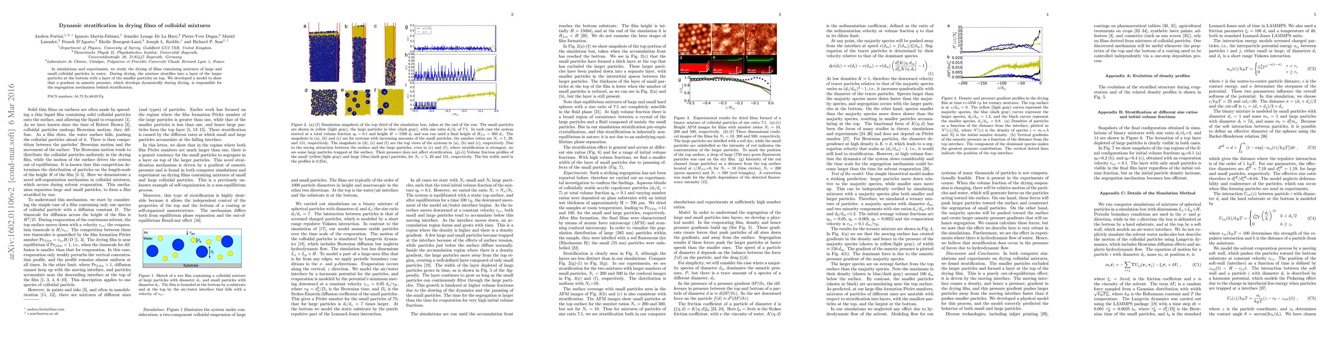 This paper investigates the dynamic stratification observed in drying films of colloidal mixtures, revealing that large particles settle at the bottom while small particles rise to the top due to a gradient in osmotic pressure that develops during the drying process. The study combines simulations and experiments to validate a model explaining this segregation mechanism.