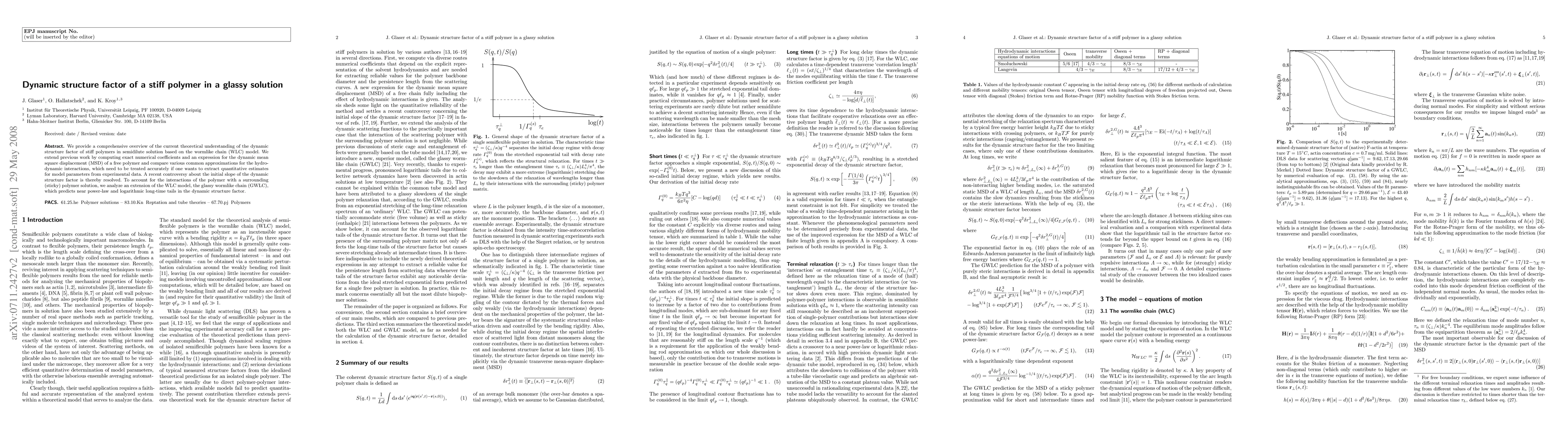 Researchers study the dynamic structure factor of stiff polymers in a glassy solution using the wormlike chain model, resolving a controversy about initial slope dynamics and predicting near power-law long-time tails.