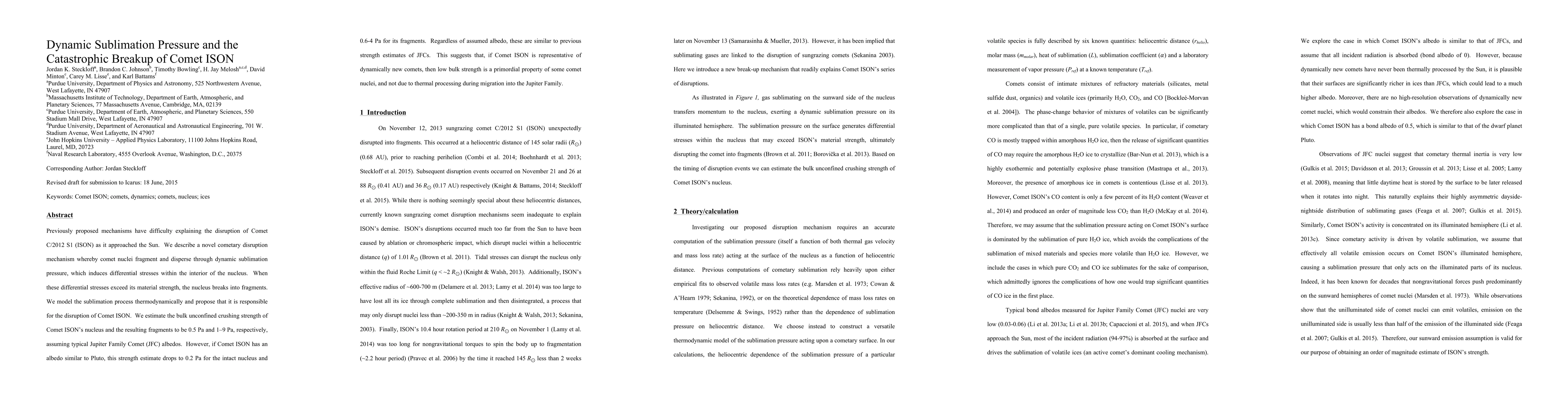 A new study proposes that comet disruption was caused by dynamic sublimation pressure, which induced internal stresses in the nucleus, leading to catastrophic breakup. This finding suggests that some comets may have low bulk strength due to primordial properties, rather than thermal processing.